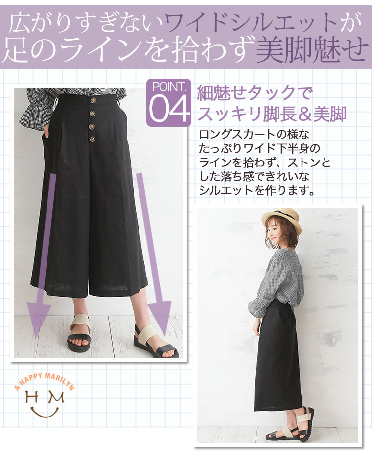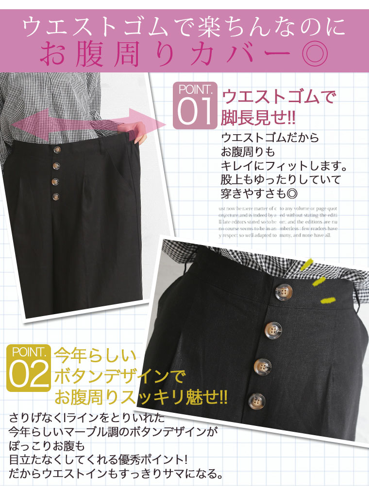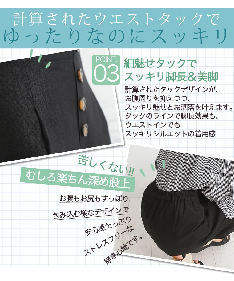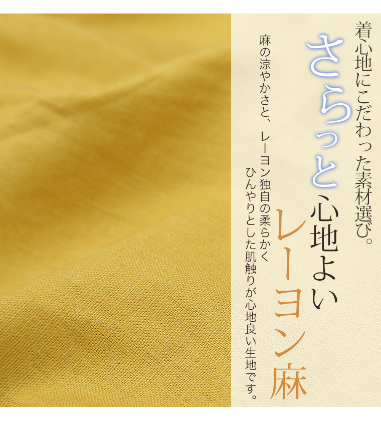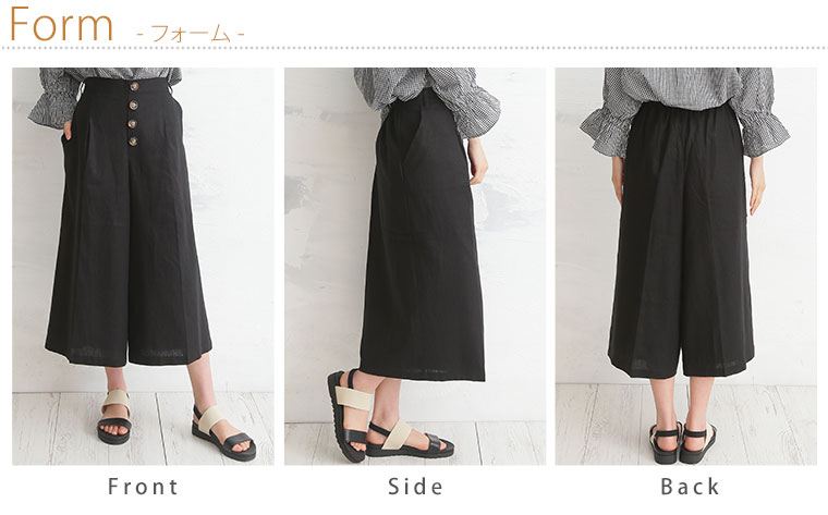 レーヨン麻で涼し気な素材。タック膝下ガウチョパンツ