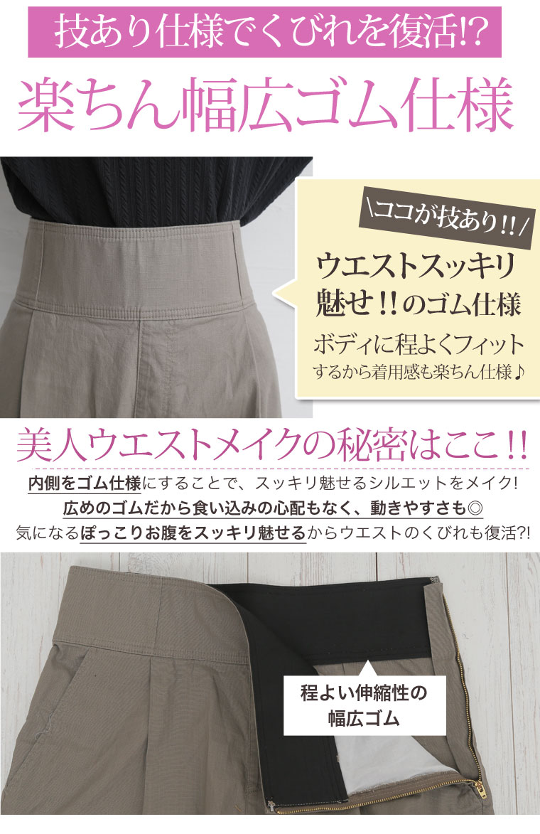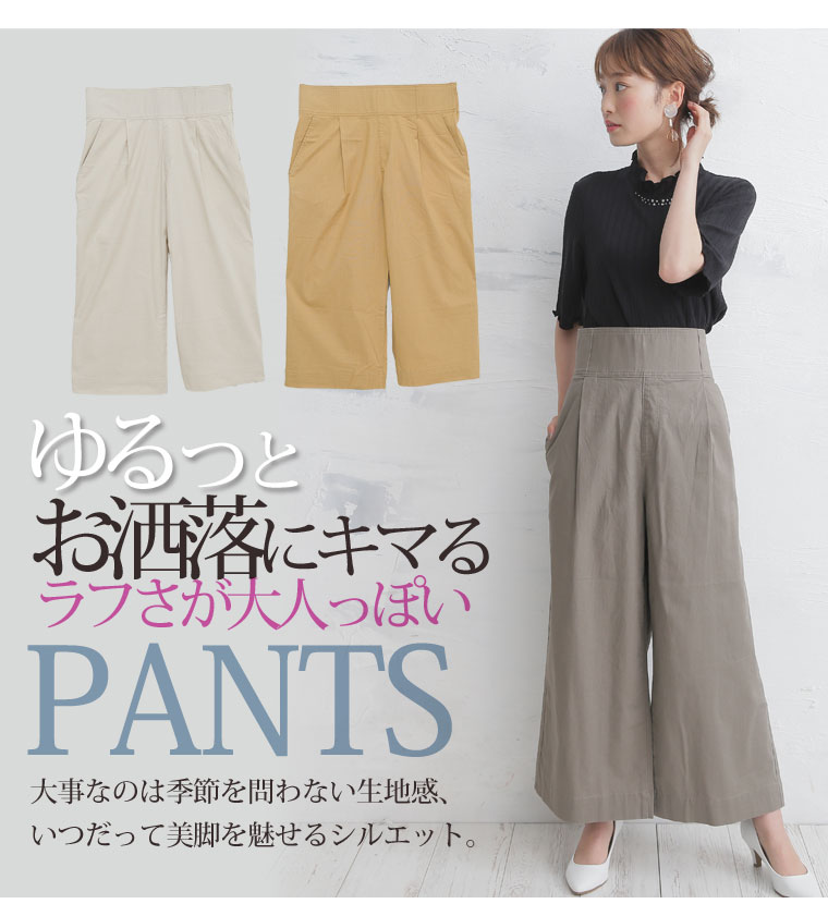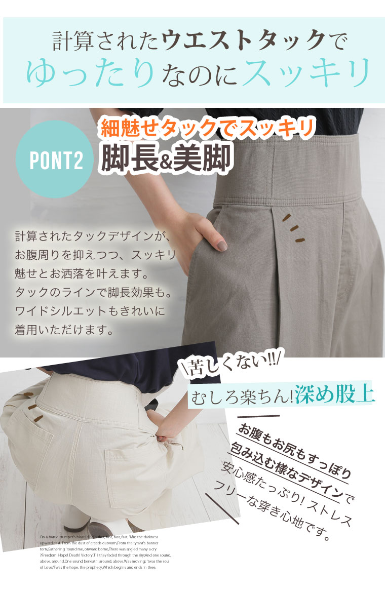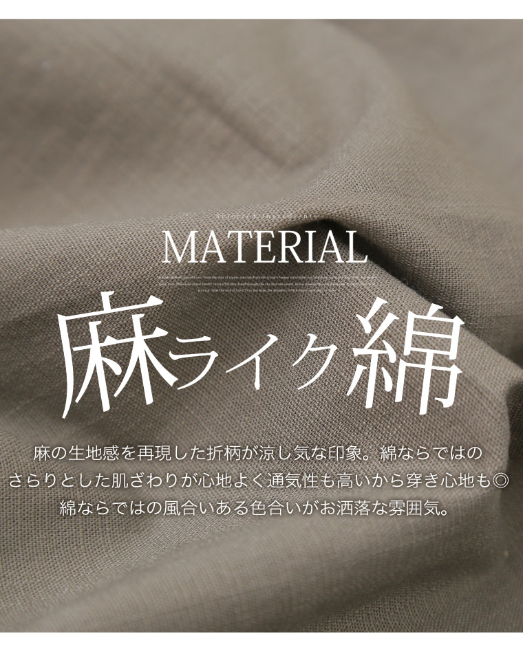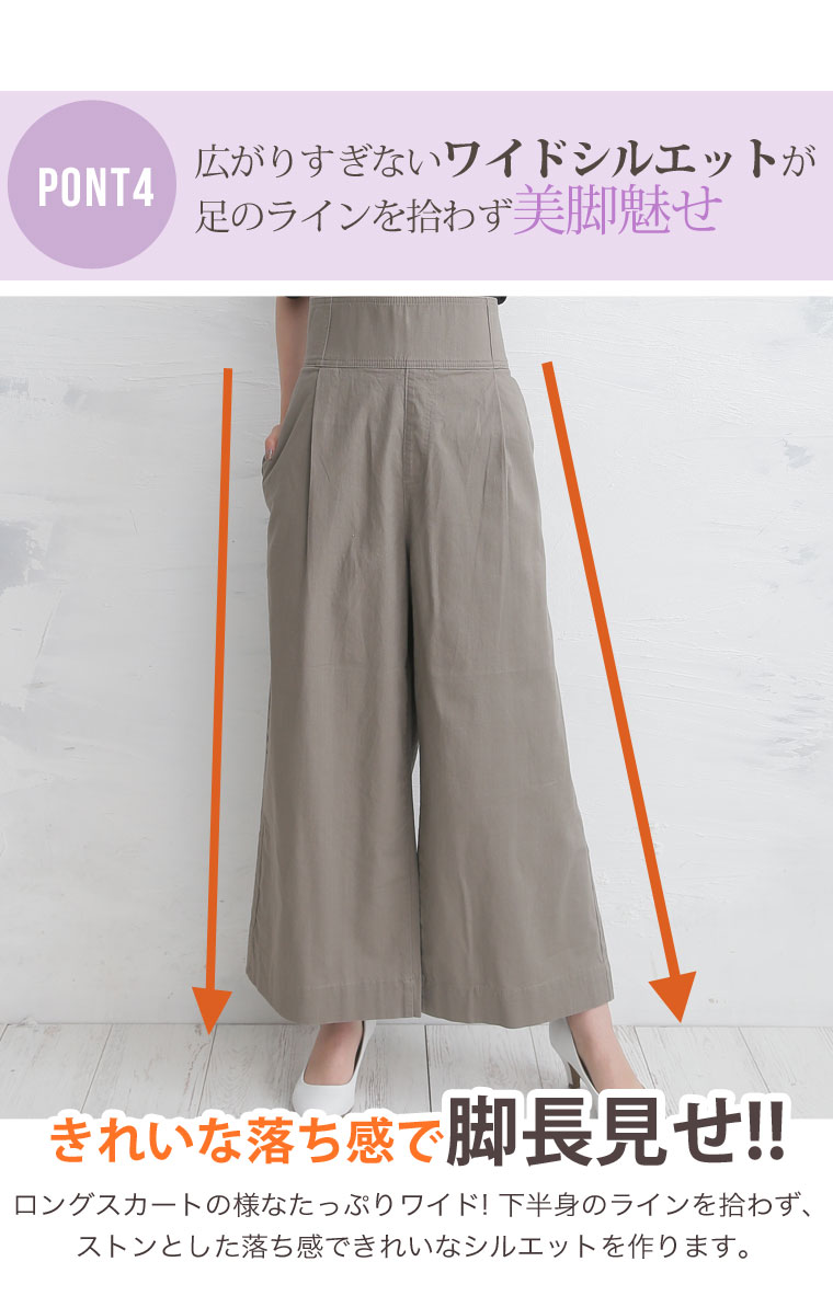 麻調綿でさらりと着こなす!!脚長美脚のタックデザインワイドパンツ
