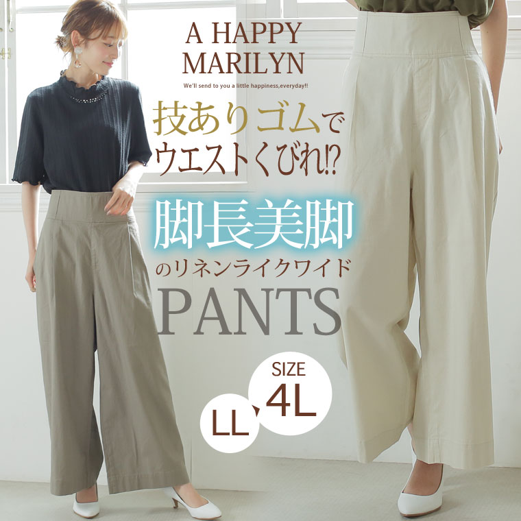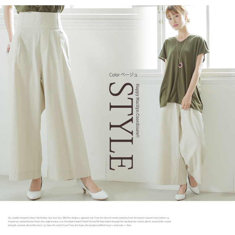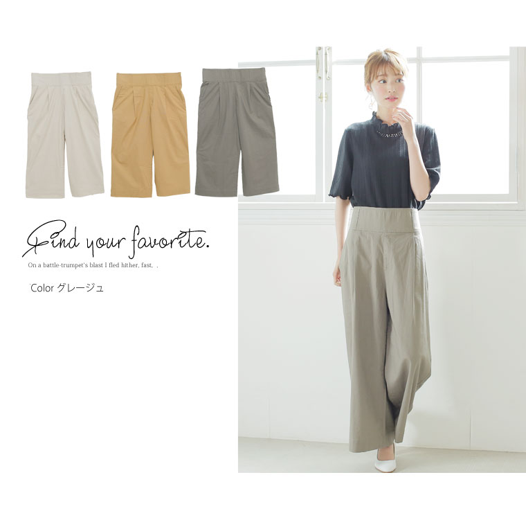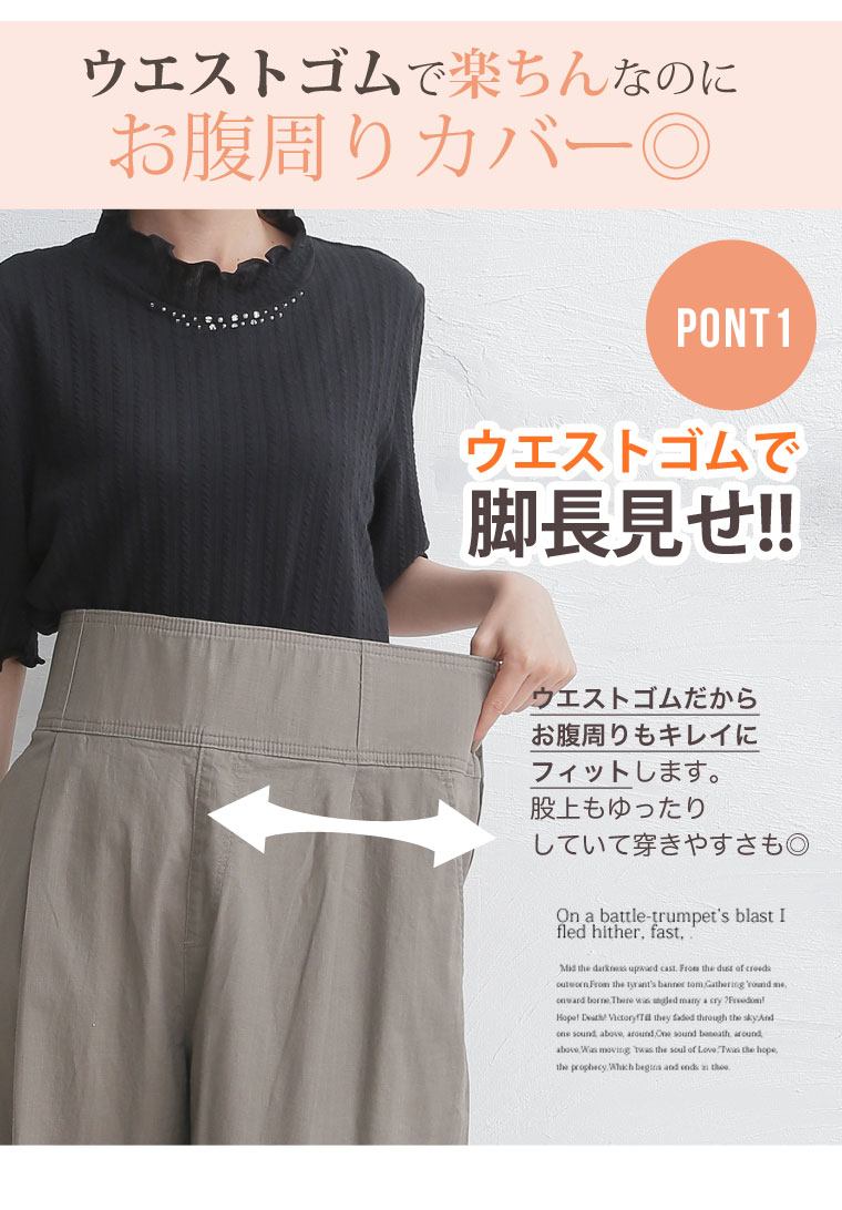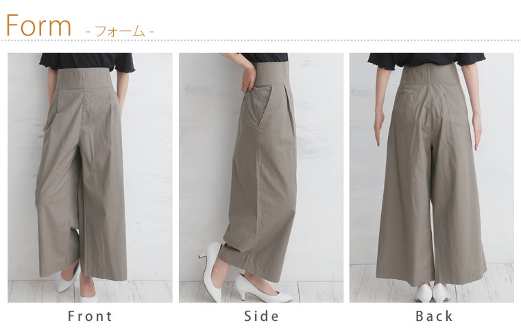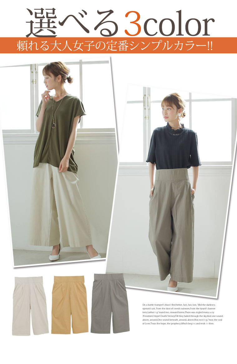 麻調綿でさらりと着こなす!!脚長美脚のタックデザインワイドパンツ