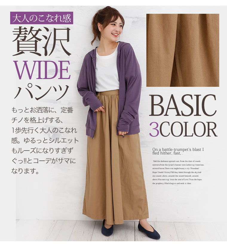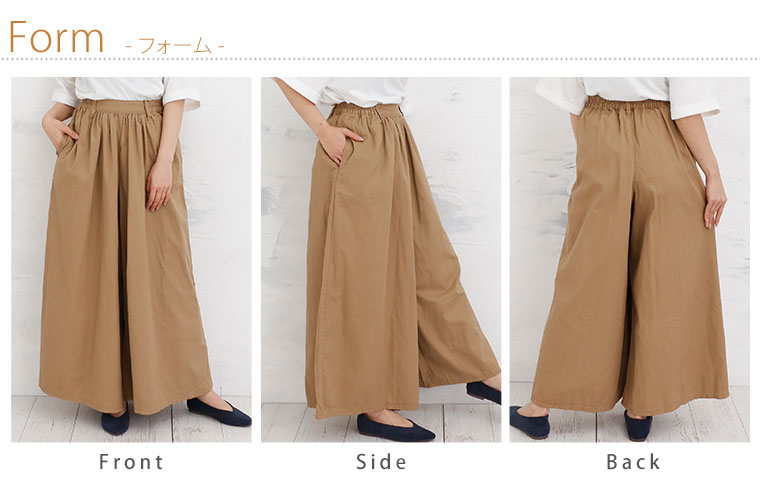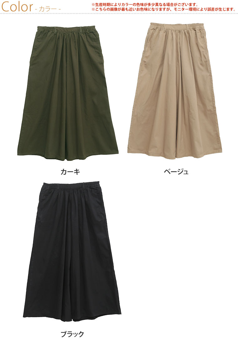 足元まですっぽりカバー出来る!!ナチュラルデザインのツイルガウチョワイドパンツ