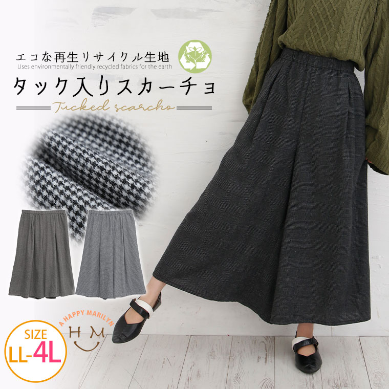 地球に優しい!エコな再生リサイクル生地 タック入りスカーチョ