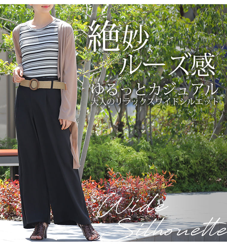 カジュアルコーデにも大人スタイルにも使える!麻ライクタックワイドパンツ