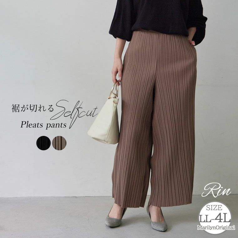ボトムス ワイドパンツ LL 3L 4L 5L 6L 秋 秋物 秋服 冬 冬物 冬服 リン ぽっちゃり ゆったり キレイめ 上品 高見え プラスサイズ プリーツ加工 【ウェストゴム】 Rin 裾が切れる セルフカット プリーツパンツ | 大きいサイズの通販ならハッピーマリリン