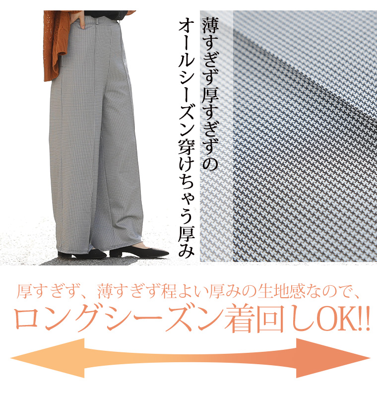 脚のラインを上手に隠すゆるっとシルエット。オールシーズン穿けちゃう厚みでデイリーに大活躍