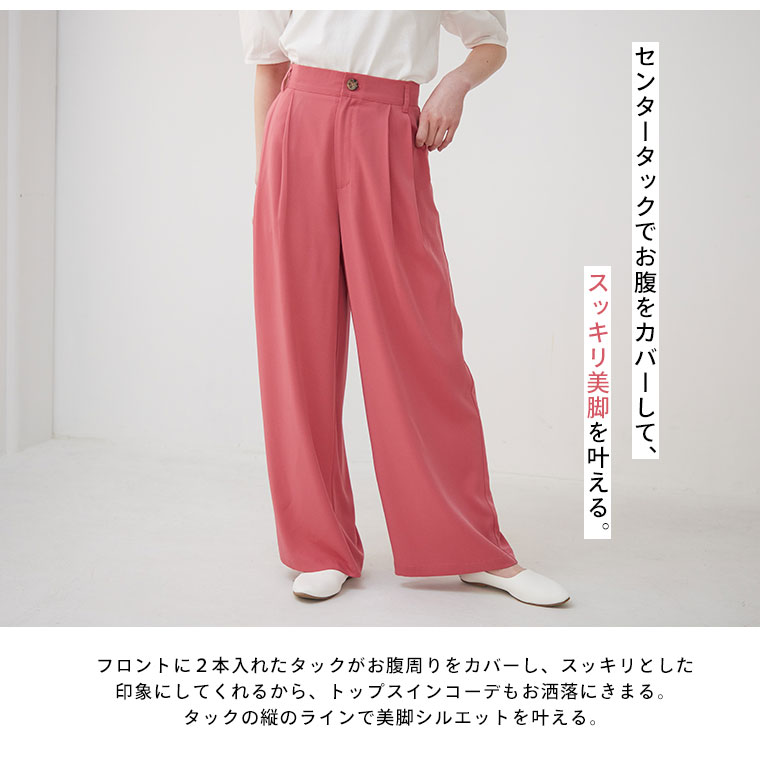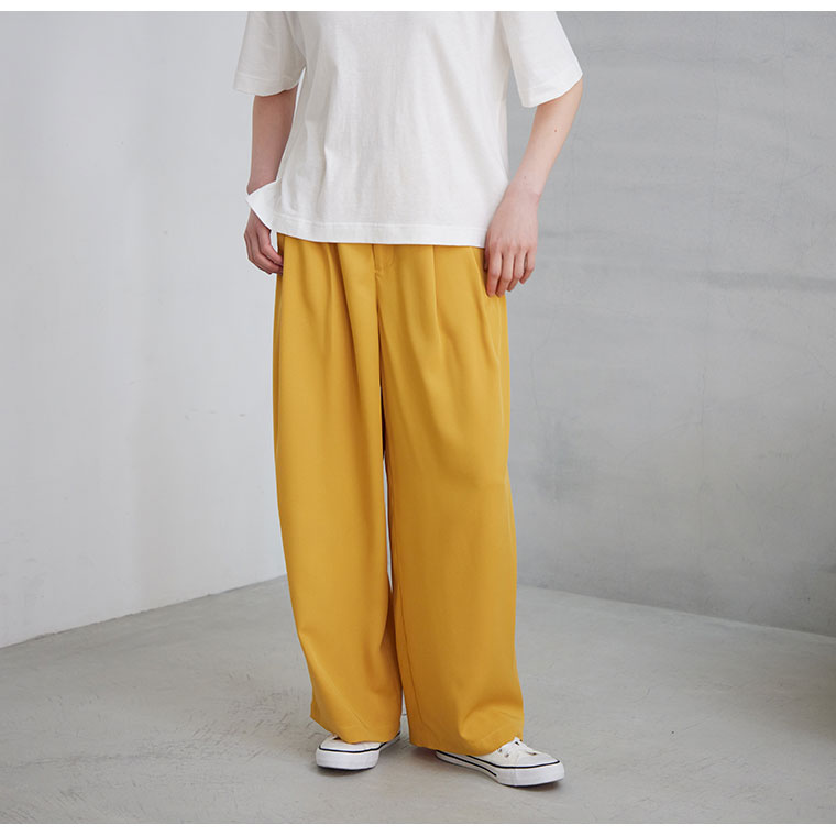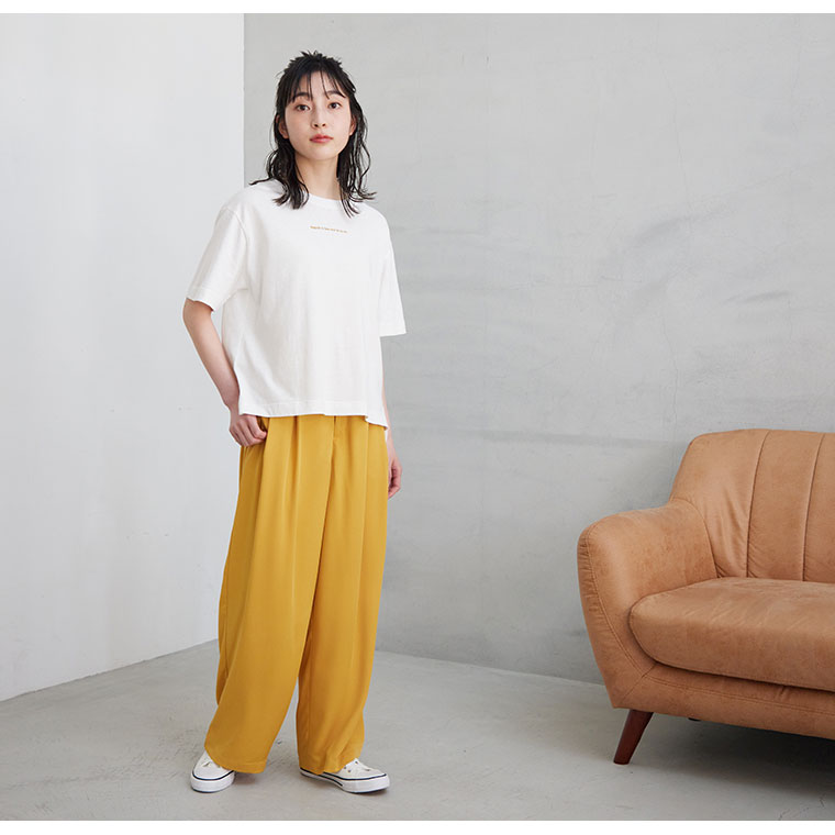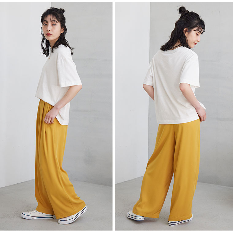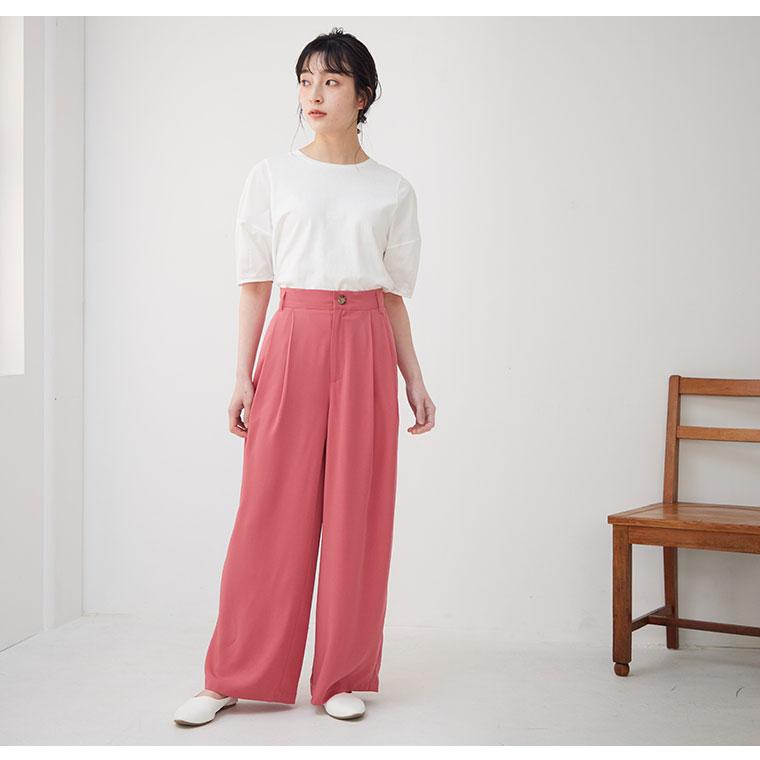洗えるとろみ素地でゆったり着れるワイドパンツ