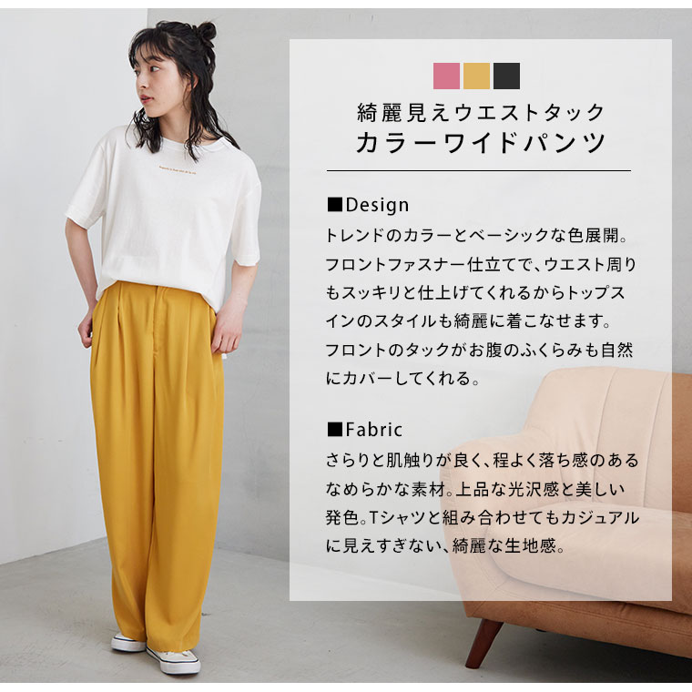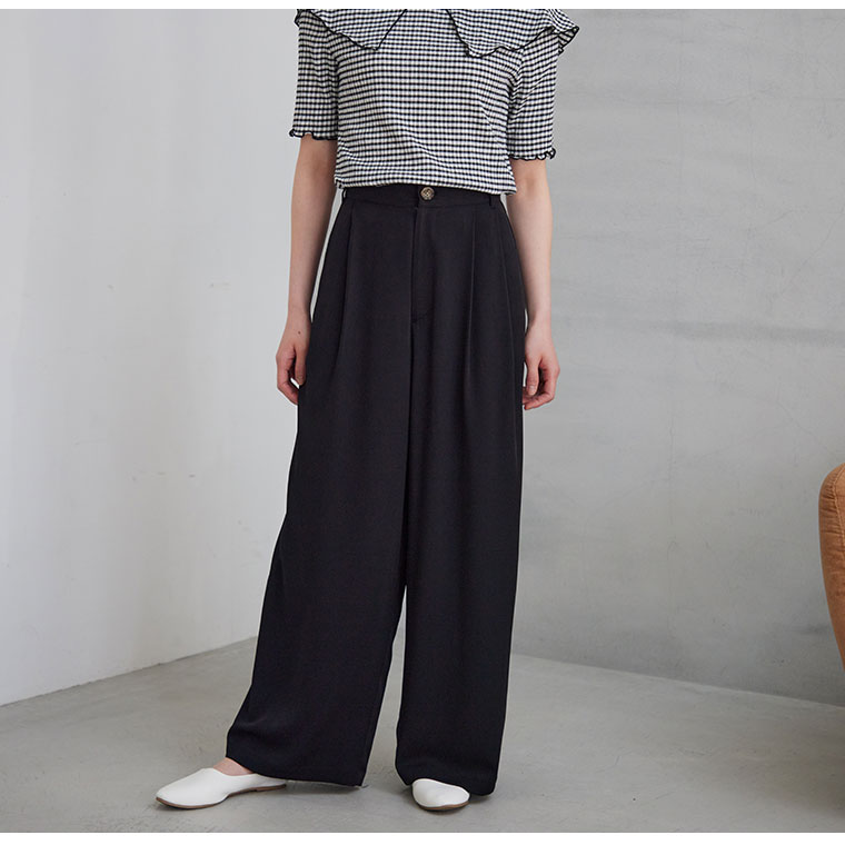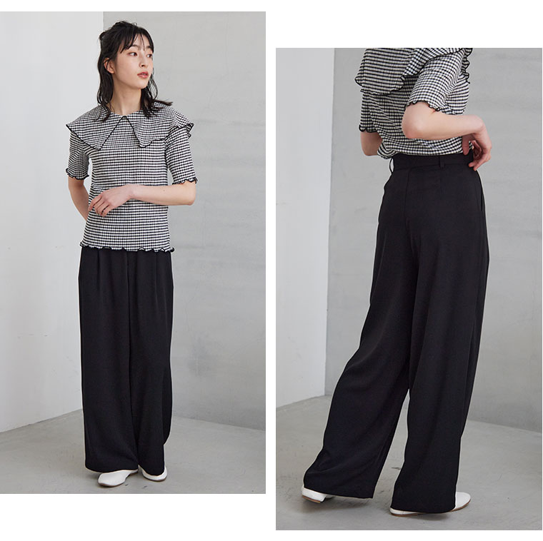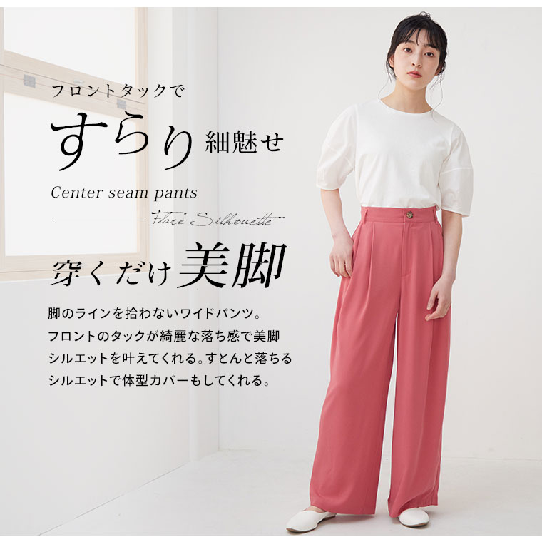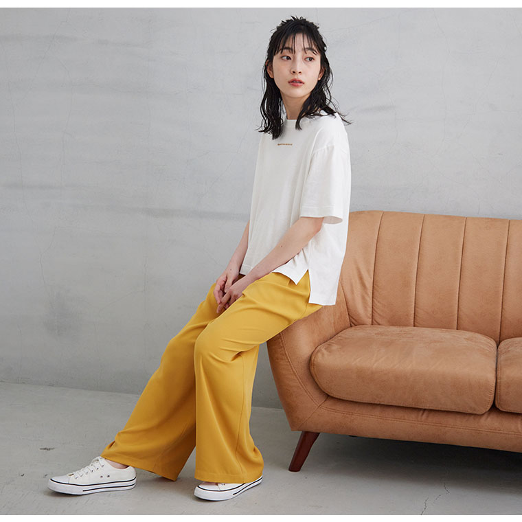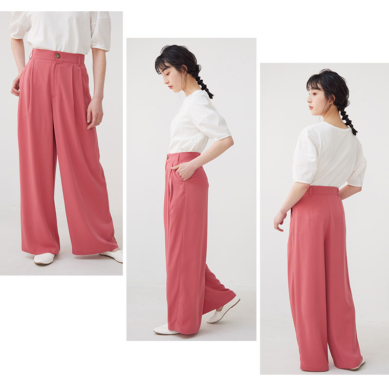 洗えるとろみ素地でゆったり着れるワイドパンツ