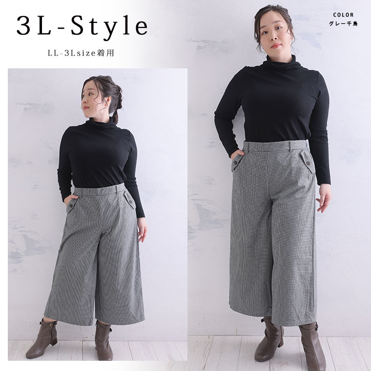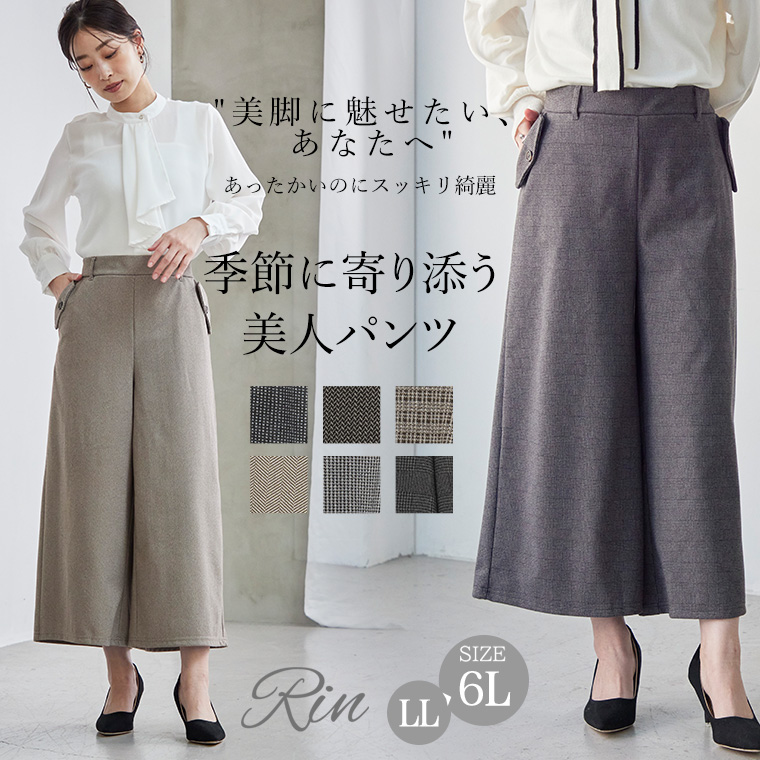 ボトムス LL 3L 4L 5L 6L 冬 冬物 冬服 ぽっちゃり ゆったり お腹 太もも お尻 腰周り リン きれいめ 高見え プラスサイズ Rin ポケット口フラップ ワイドパンツ オフィス 大人 ビジネス 通勤 ママ