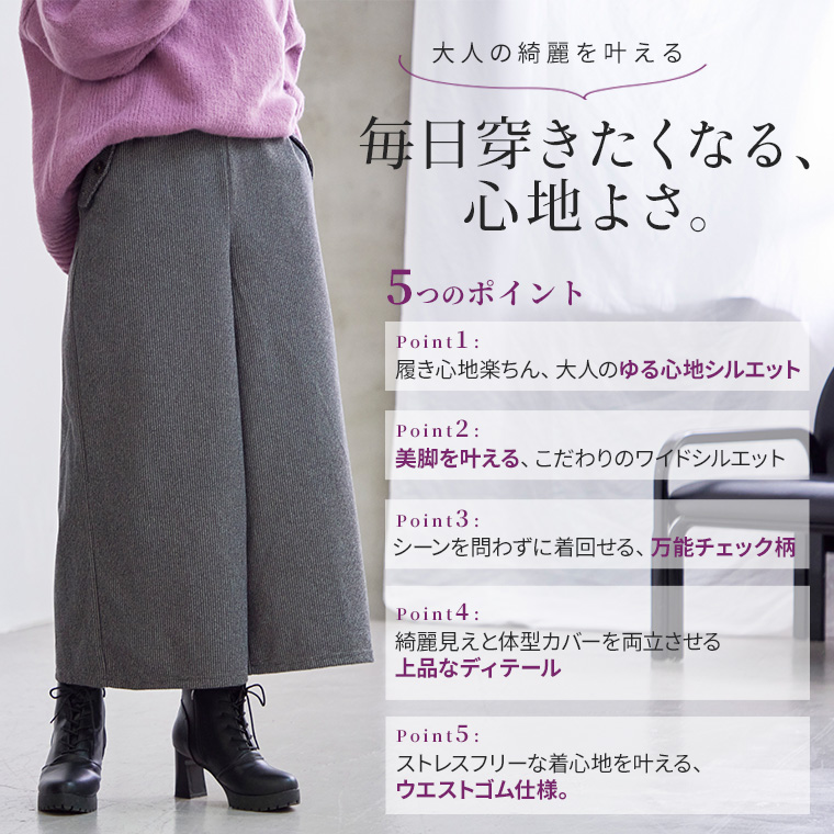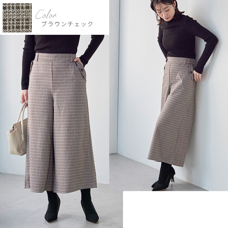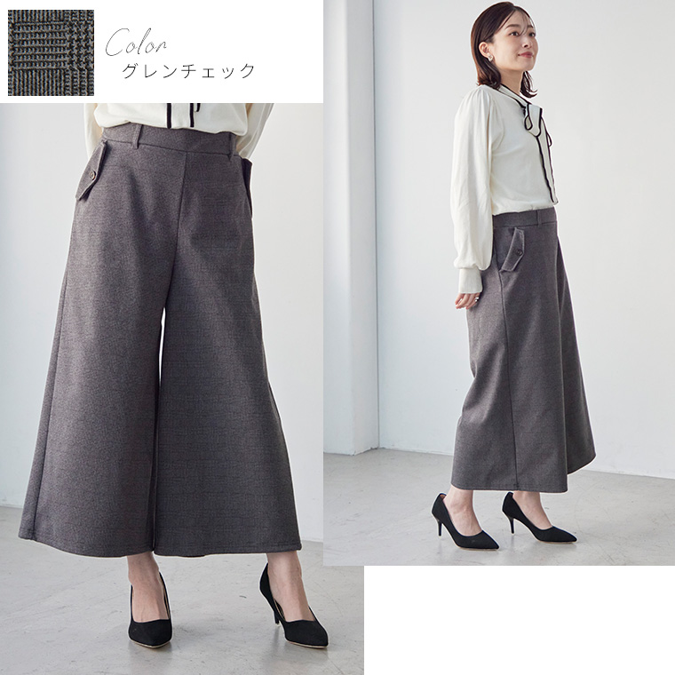 3. 大きいサイズ Rin ポケット口フラップ ワイドパンツ オフィス 大人 ビジネス 通勤 ママ