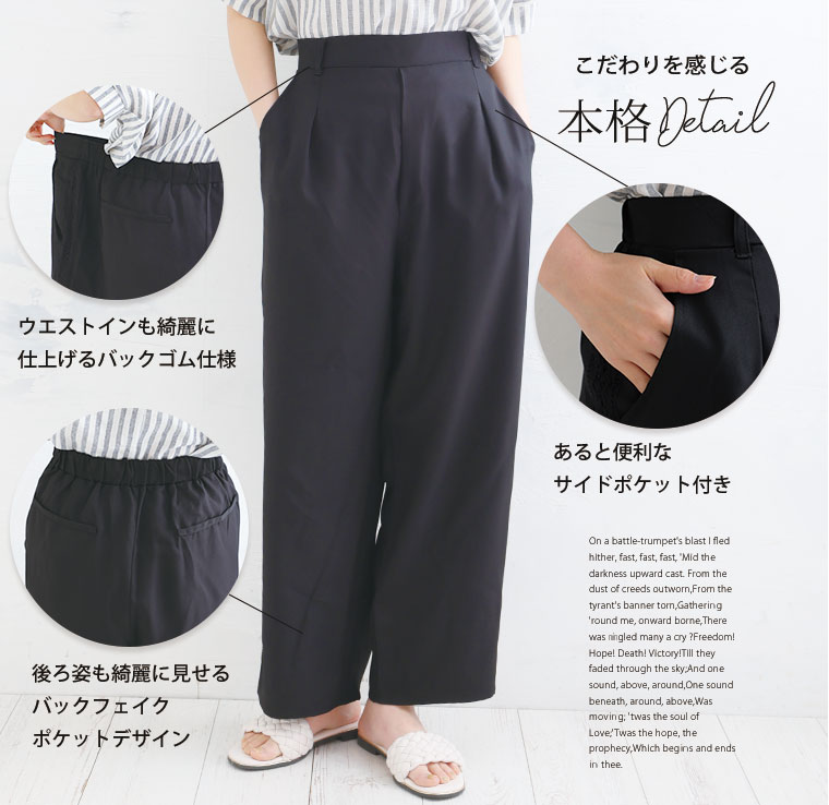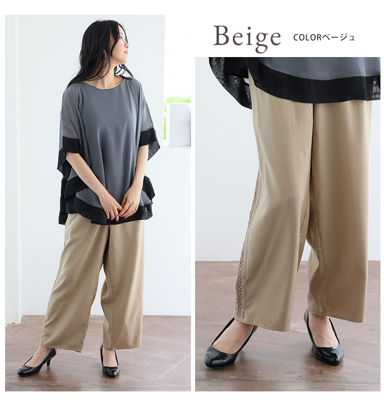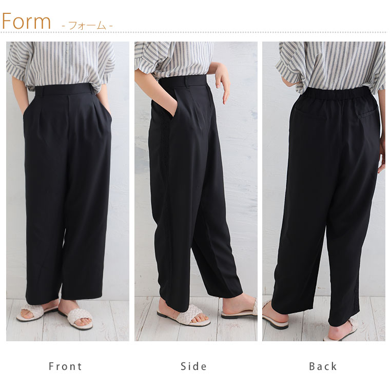 さらり、上品ワイド。サイドレースワイドパンツ