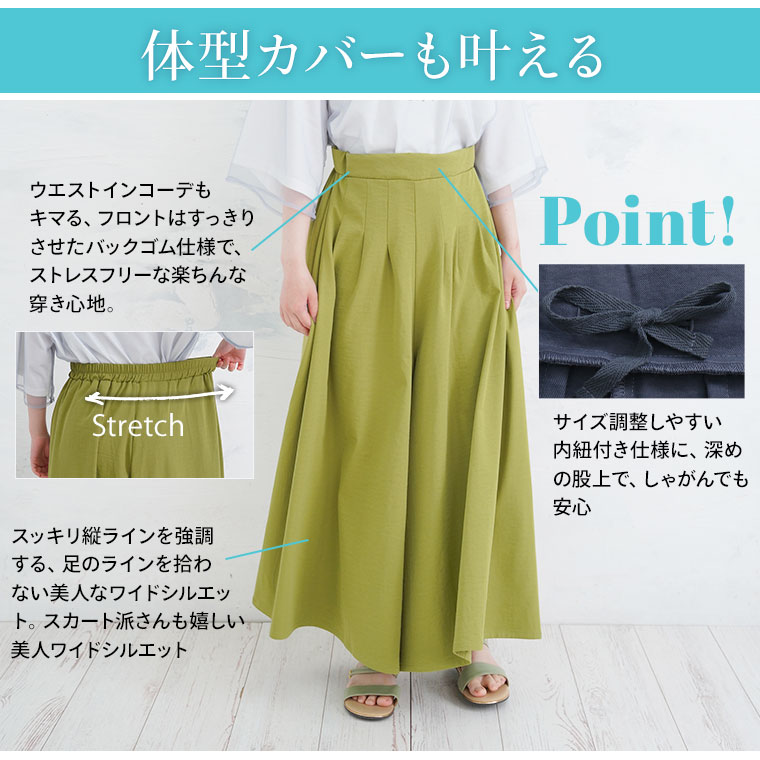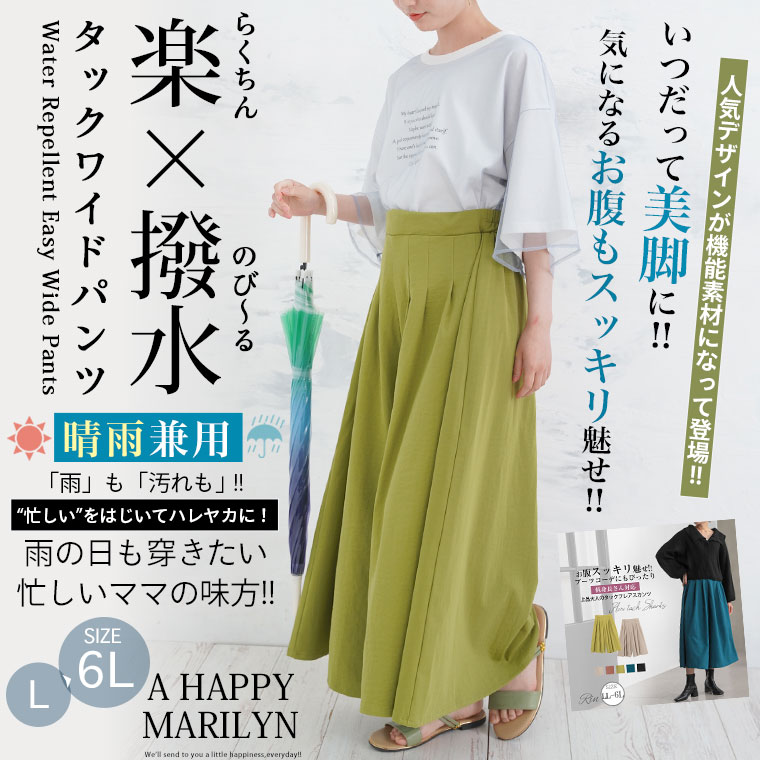 オリジナル ボトムス ワイドパンツ ツイルパンツ LL 3L 4L 5L 6L 夏 夏物 夏服 夏用 ぽっちゃり 忙しいママも、雨の日も安心! 撥水&ストレッチ ツイル ぽっこりお腹をスッキリ魅せる 美脚フレア ワイドパンツ