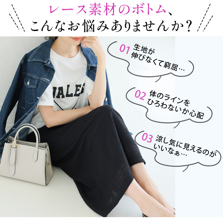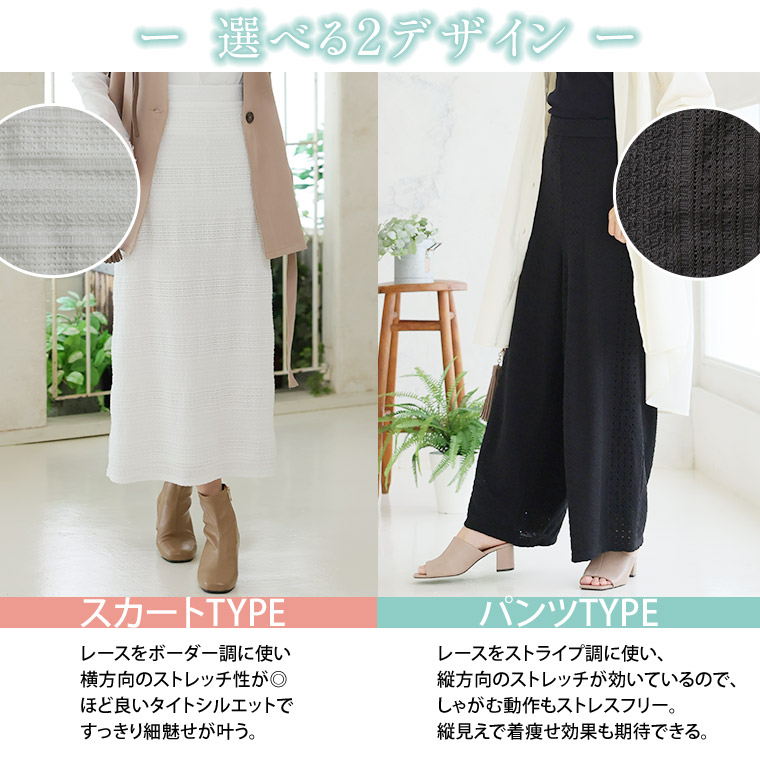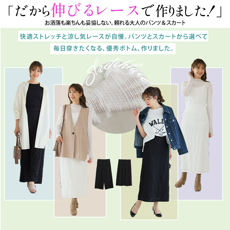大人女子にちょうどいい存在感、レースパンツ&スカート
