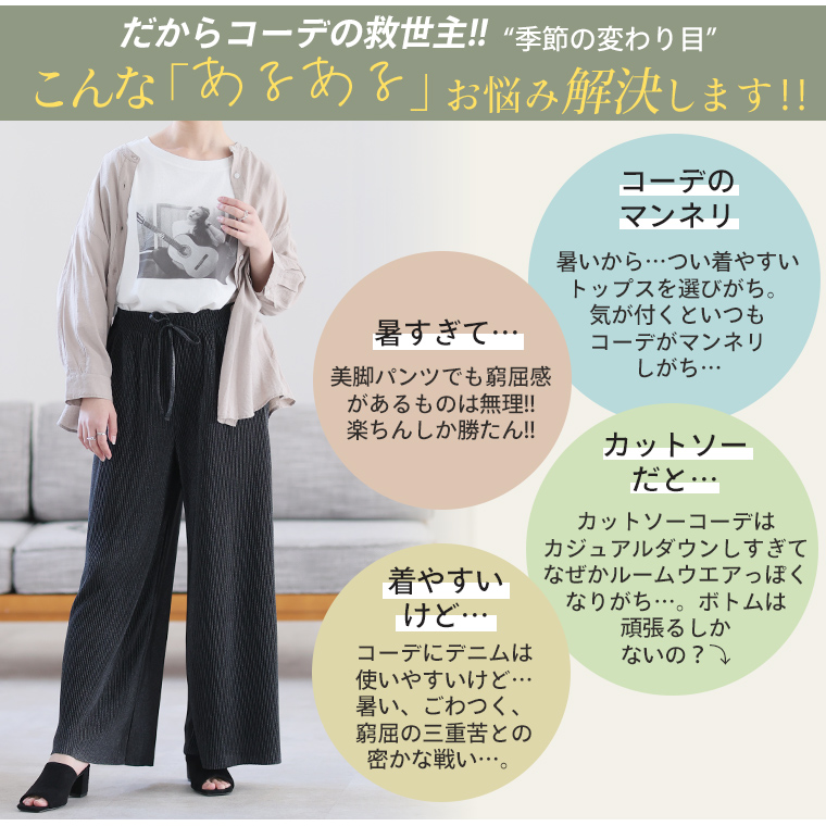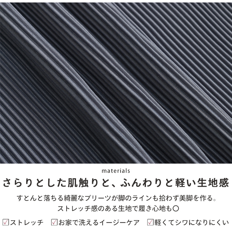 プリーツのすとんとした落ち感が楽ちんなのに、今年らしく仕上がる