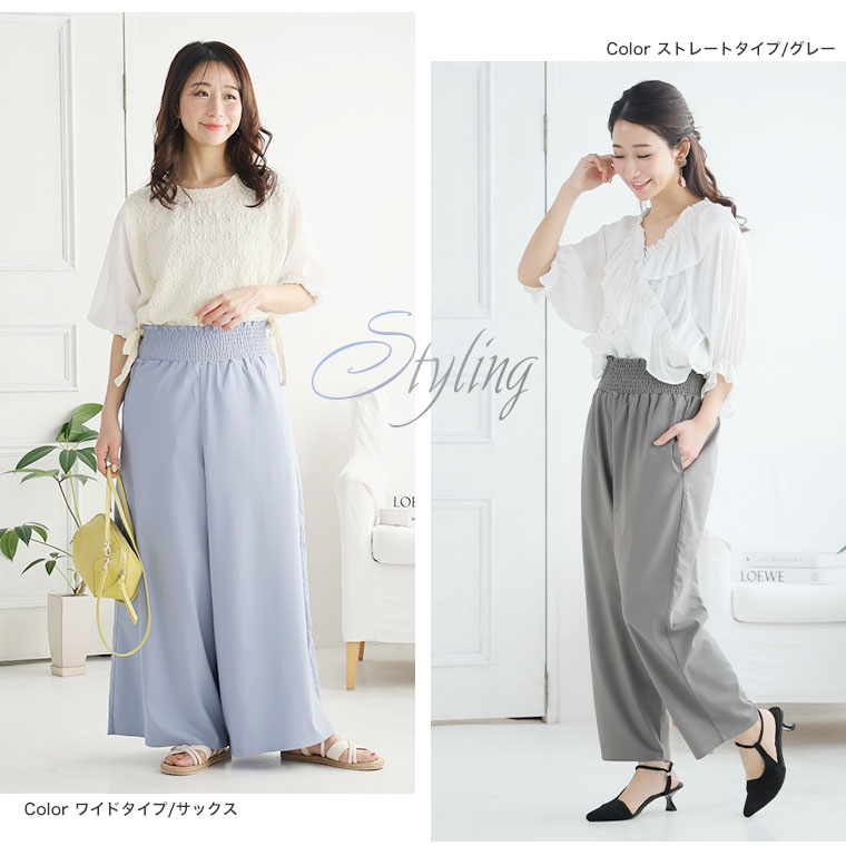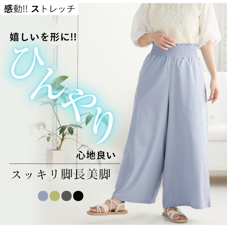 ボトムス 夏 夏物 夏服 夏用 お腹 太もも 接触冷感 夏の嬉しいを叶える! お腹すっきり魅せ! 選べる2カタ 接触冷感 ヒップメッシュでさらりと快適 ハイストレッチパンツ ワイドパンツ ストレートパンツ【ウェストゴム】【ストレッチ】