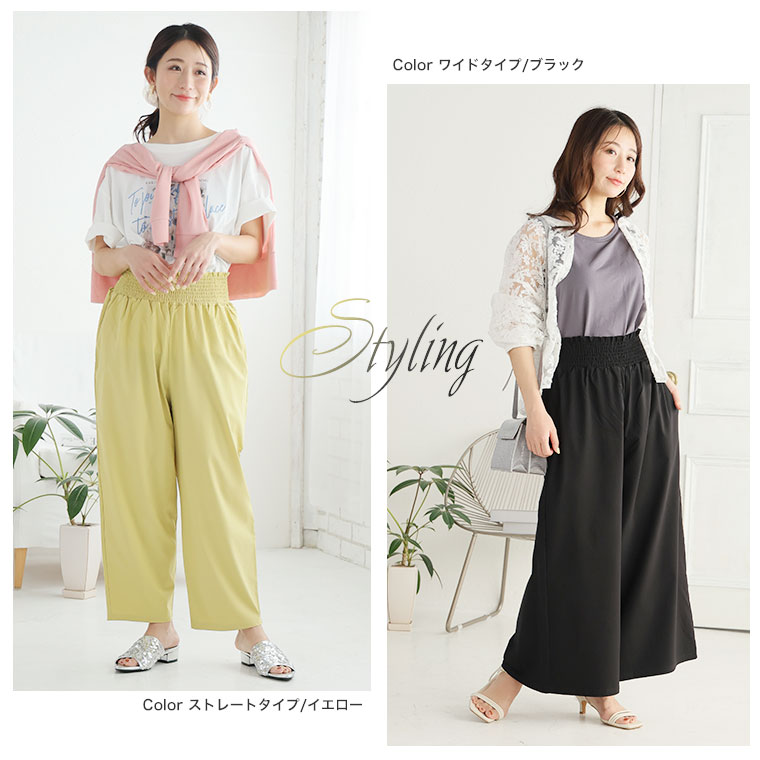 大きいサイズ 夏の嬉しいを叶える! お腹すっきり魅せ! 選べる2カタ 接触冷感 ヒップメッシュでさらりと快適 ハイストレッチパンツ ワイドパンツ ストレートパンツ【ウェストゴム】【ストレッチ】