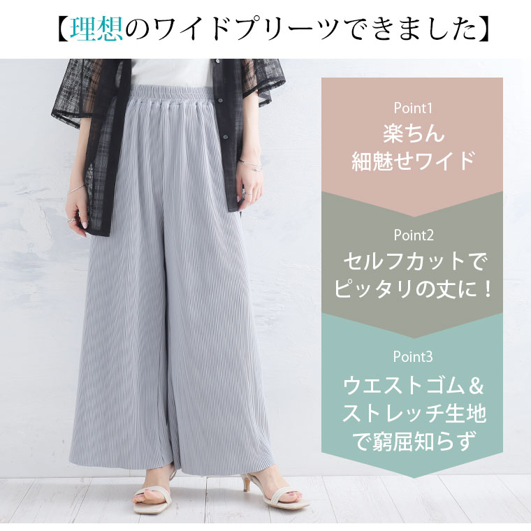 小柄さん、高身長さんも安心!自分で好きな丈にカットできるプリーツパンツ