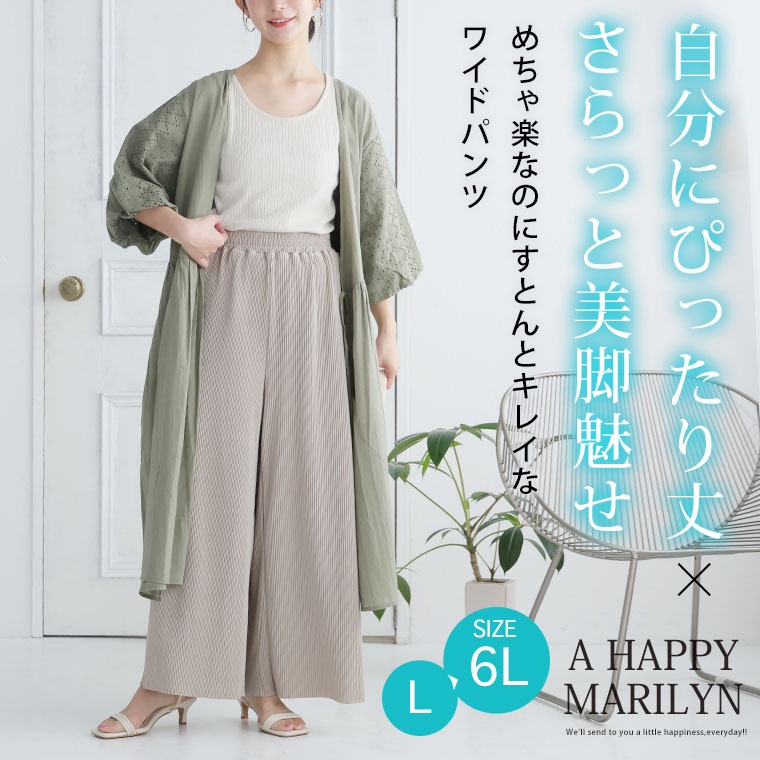 ボトムス ワイドパンツ イージーパンツ LL 3L 4L 5L 6L 夏 夏物 夏服 夏用 ぽっちゃり ゆったり プラスサイズ かわいい おしゃれ カジュアル セルフカットでジャスト丈! プリーツ パンツ