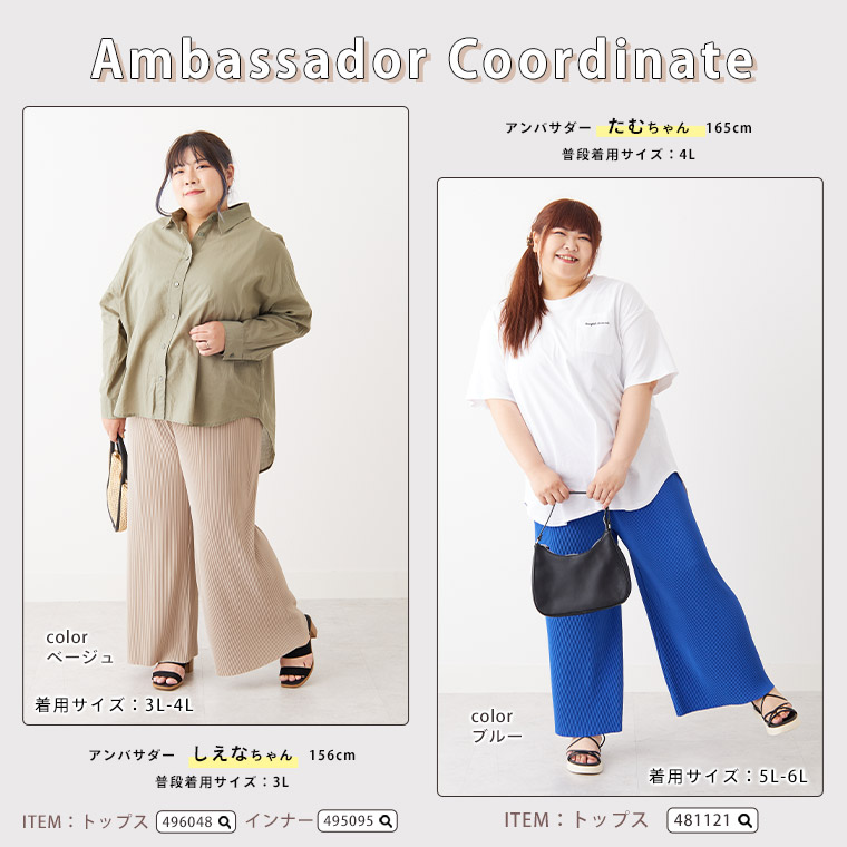 4. 大きいサイズ セルフカットでジャスト丈! プリーツ パンツ