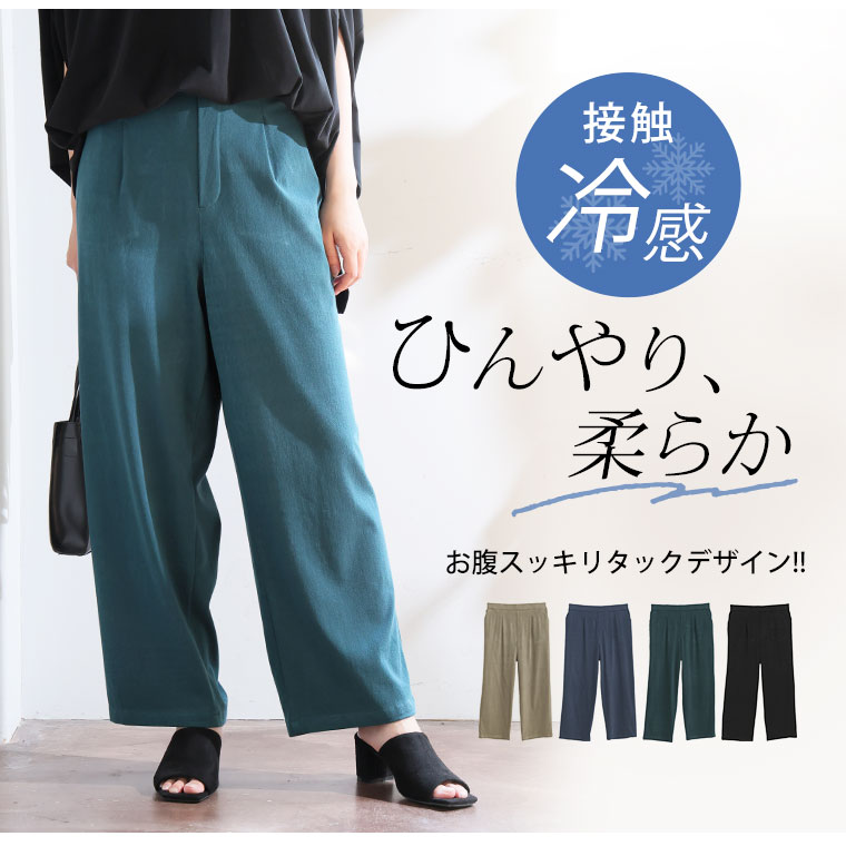 酷暑に嬉しい 接触冷感セミワイドパンツ