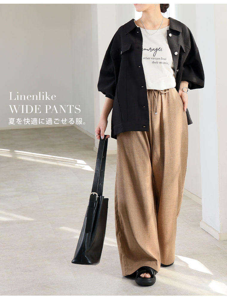 麻風素材上品の質感×体型をカバーするワイドシルエットPants