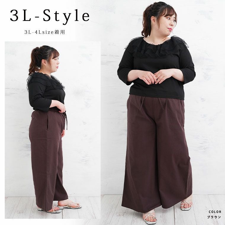オリジナル ボトムス ストレートパンツ ワイドパンツ LL 3L 4L 5L 6L 7L 8L お尻 太もも 着痩せ 体型カバー あなたはどっち! スッキリストレートとゆったりワイドシルエットが選べる! パンツ【ウェストゴム】【ストレッチ】 | 大きいサイズの通販ならハッピーマリリン