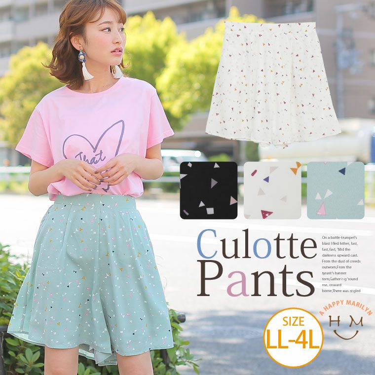 ジョーゼット生地でサラリと着こなす。ちょっぴりレトロな幾何学柄キュロットパンツ