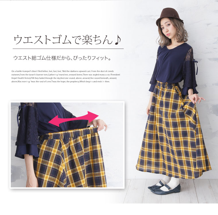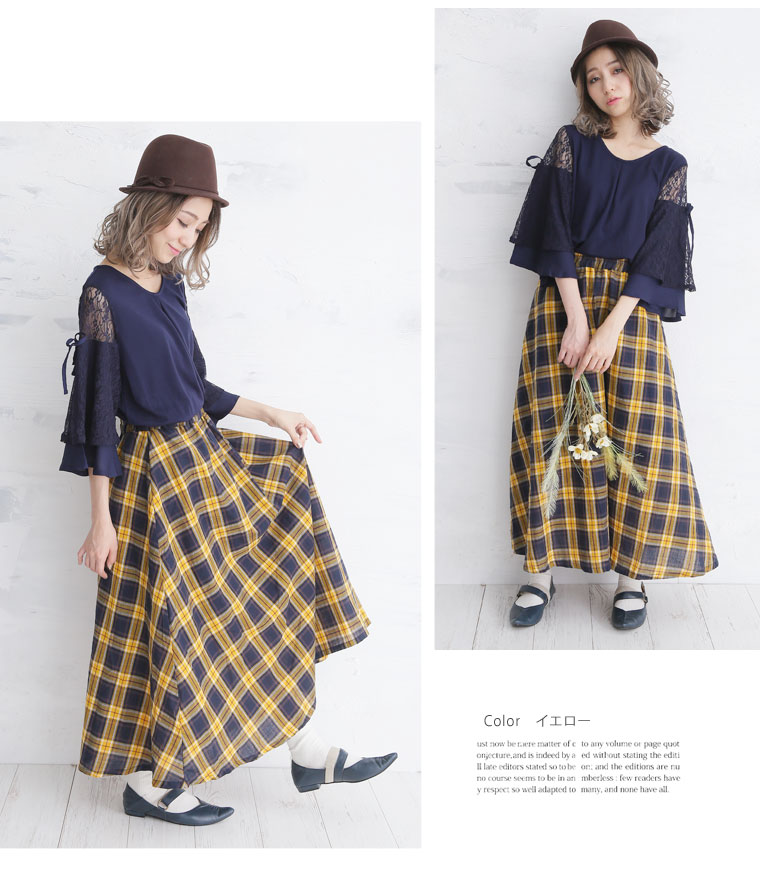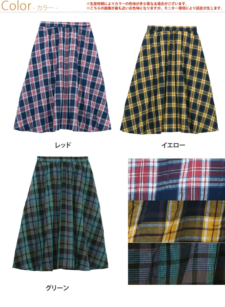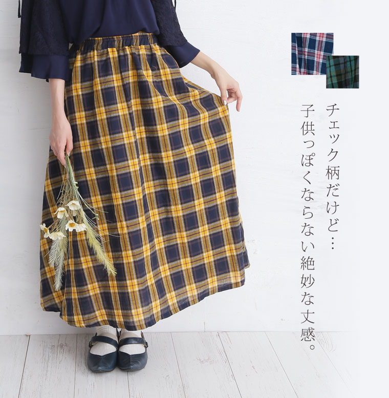 ふんわりシルエットが可愛い先染めチェックのフレアスカート