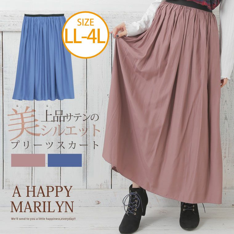 上品な光沢と大人っぽい落色味がポイントのサテンプリーツロングスカート