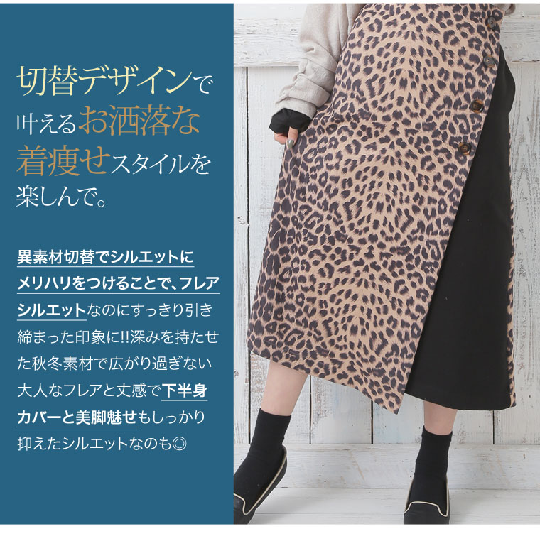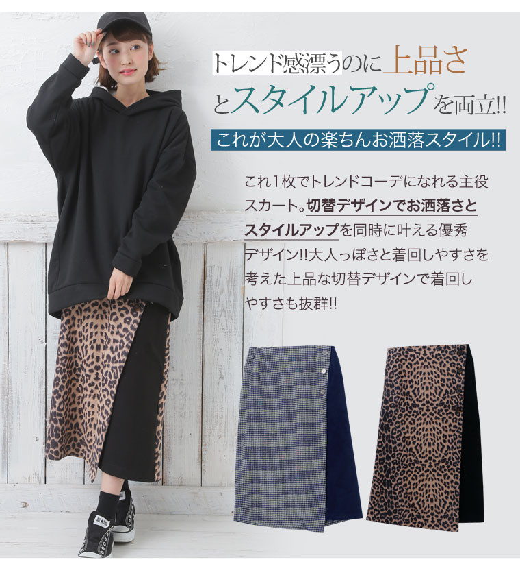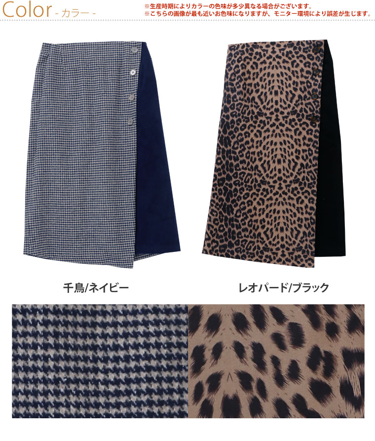 季節感たっぷりな2柄から選べる異素材仕様のラップ風スカート!!