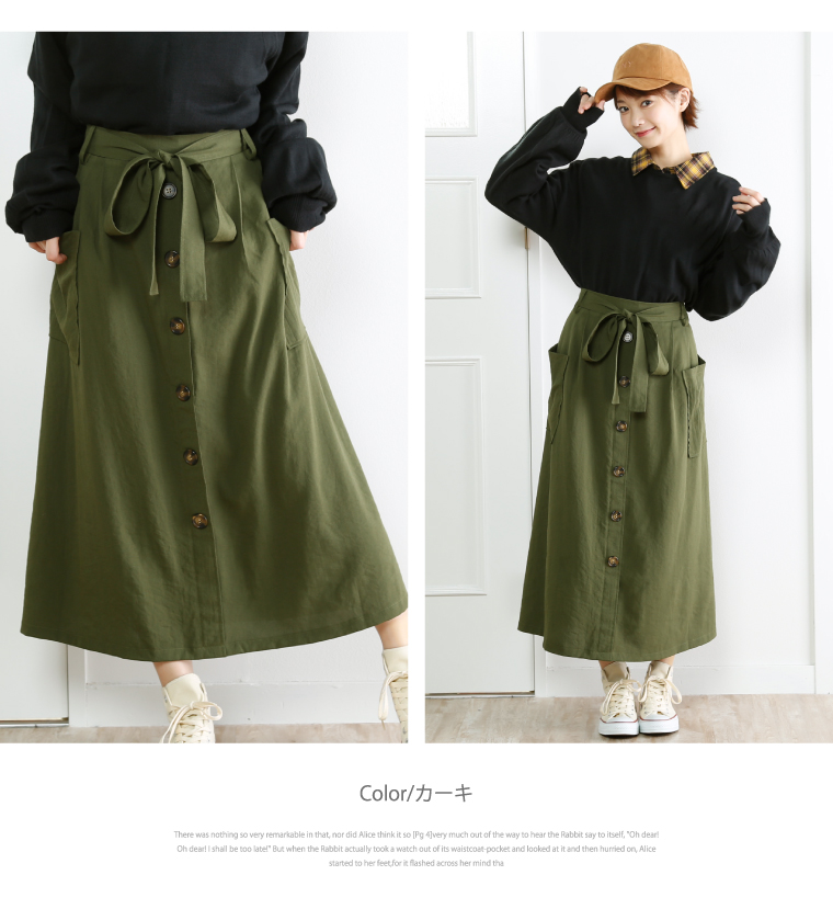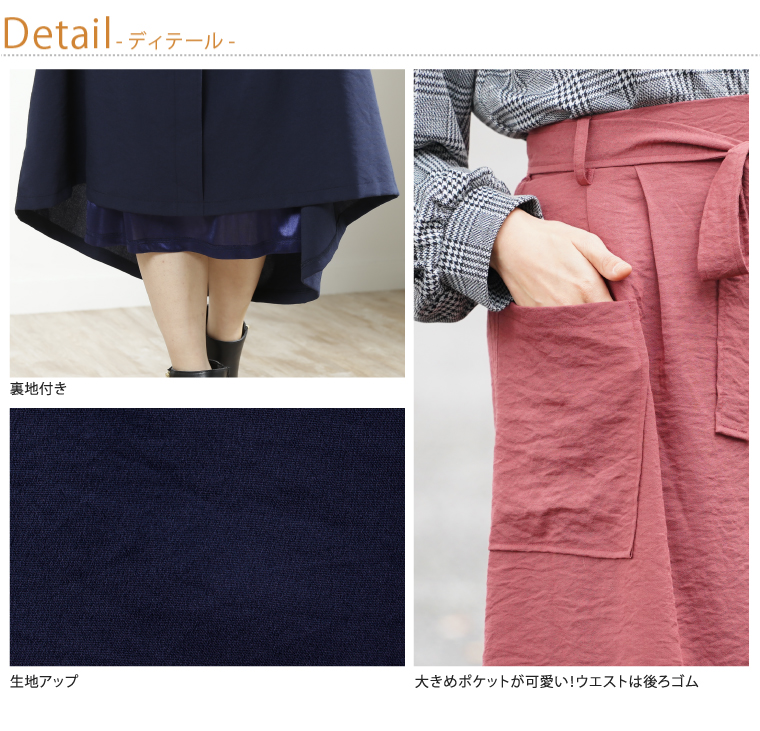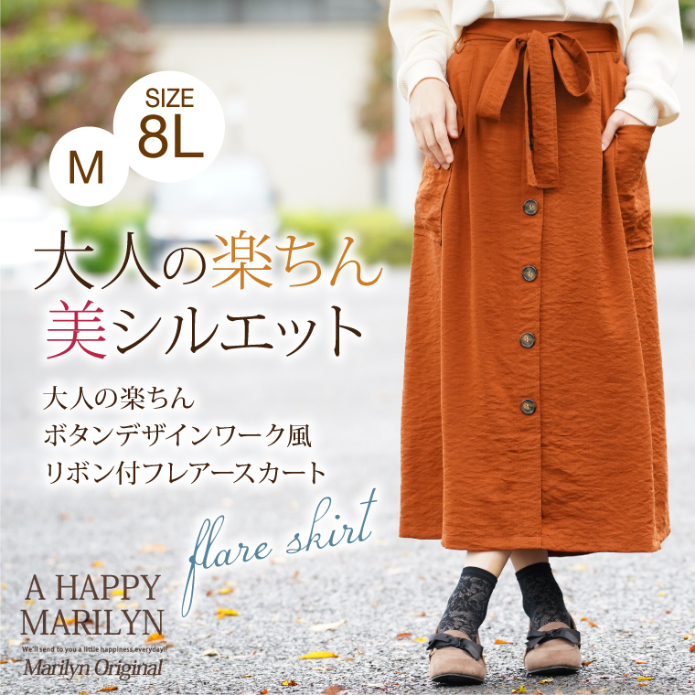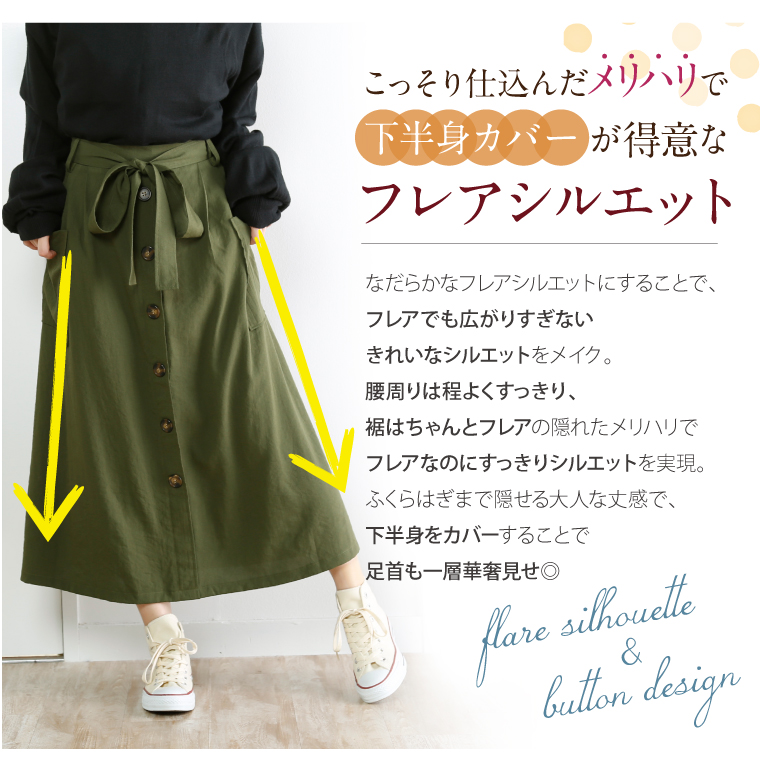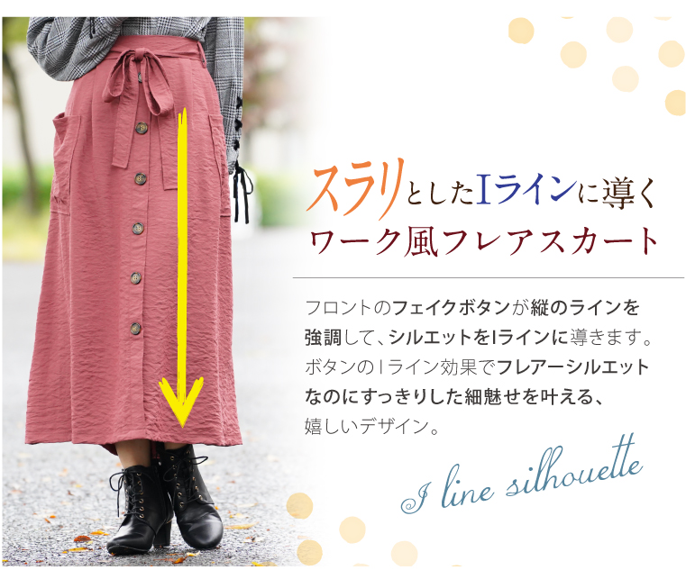 大きめポケットのついたワーク風デザインが可愛い♪大人の楽ちんフレアスカート