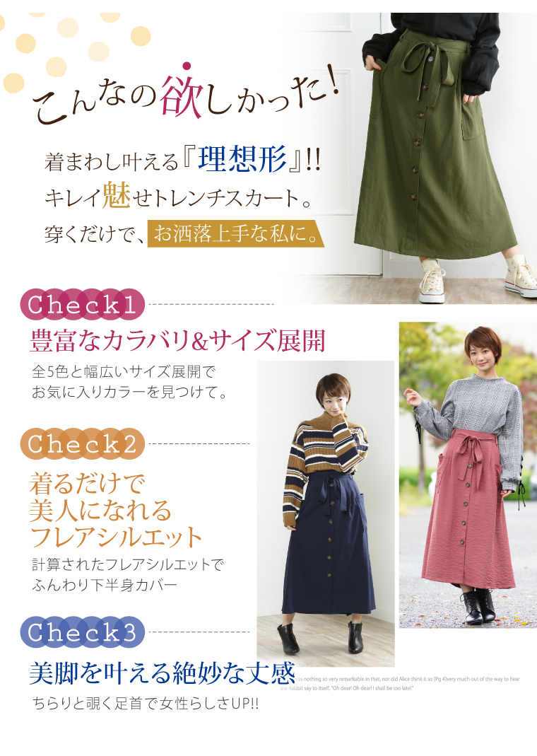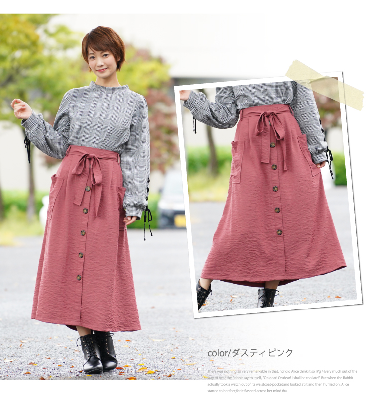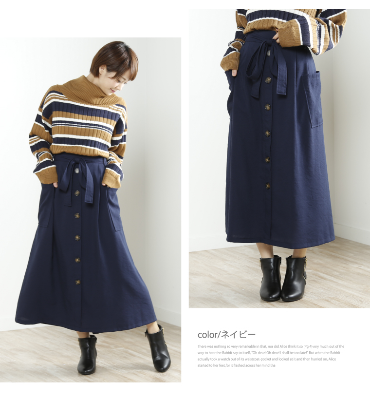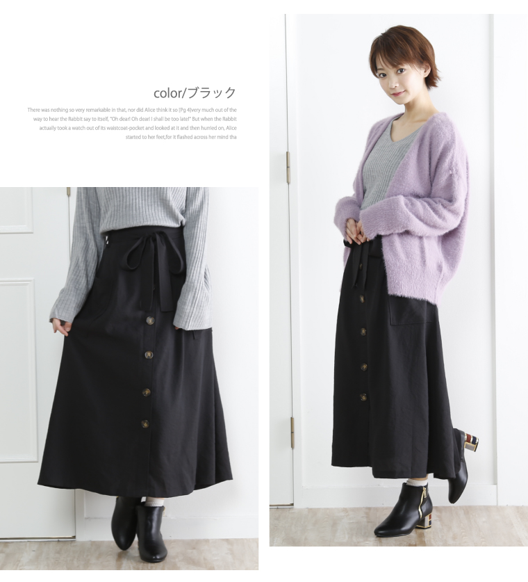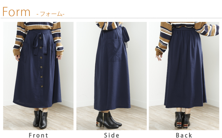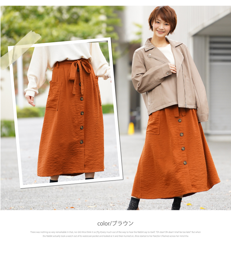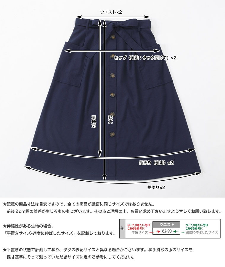 ウエストゴムでゆったりした穿き心地。大人の楽ちん美人スカートです