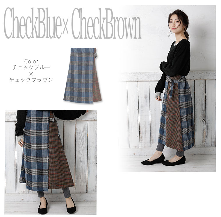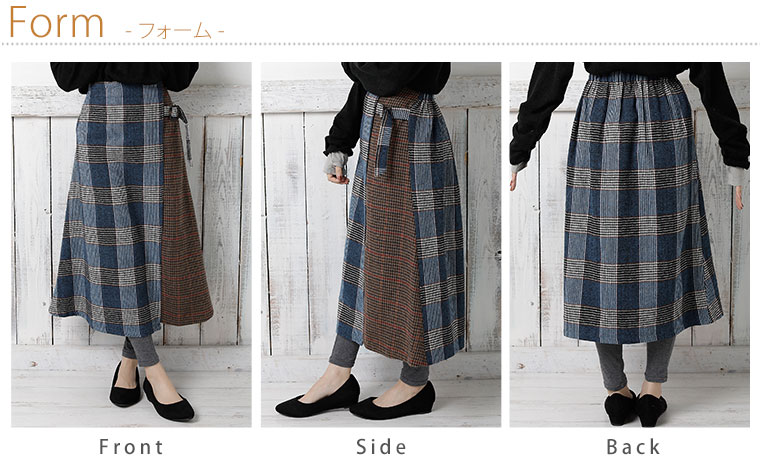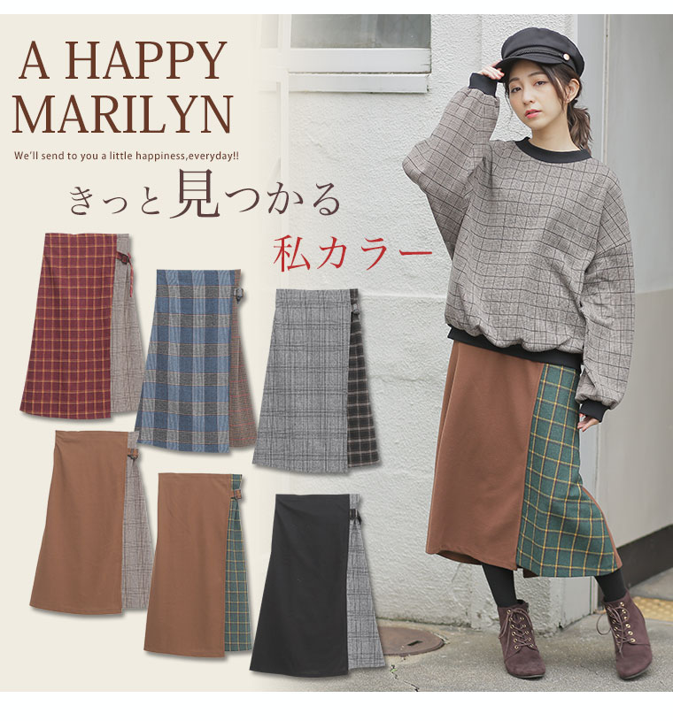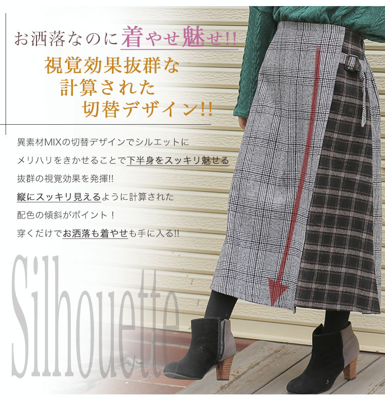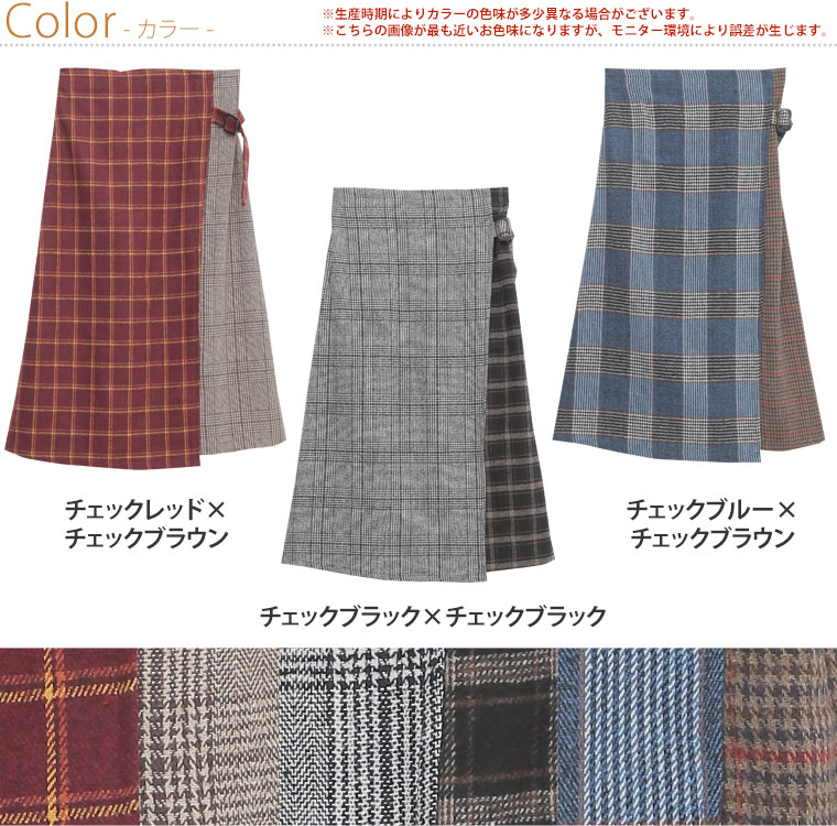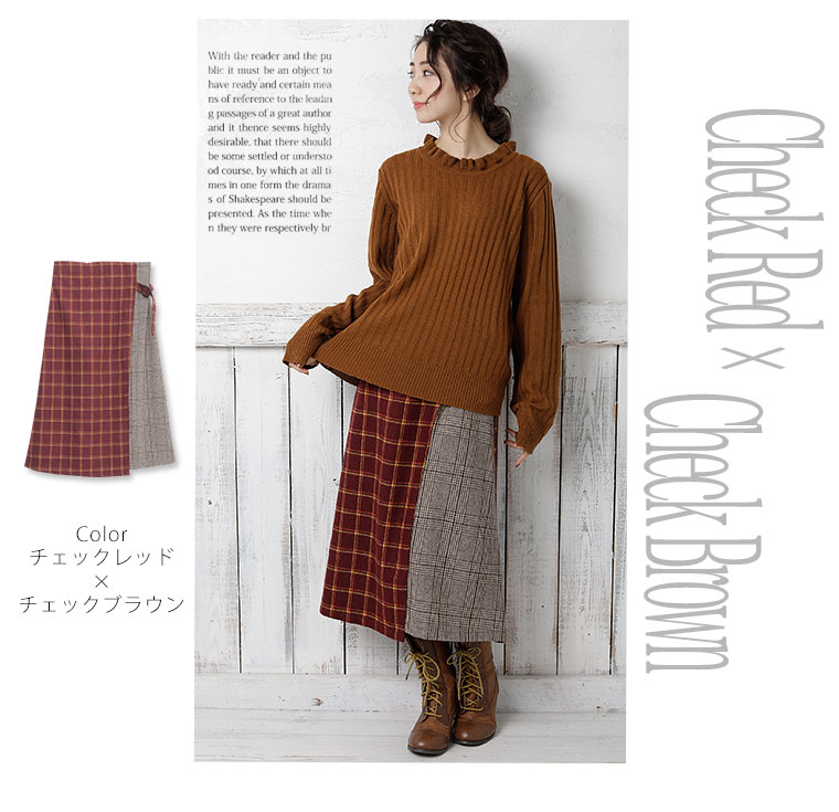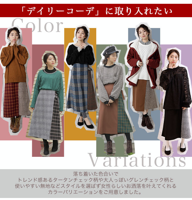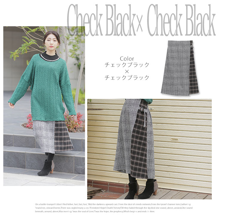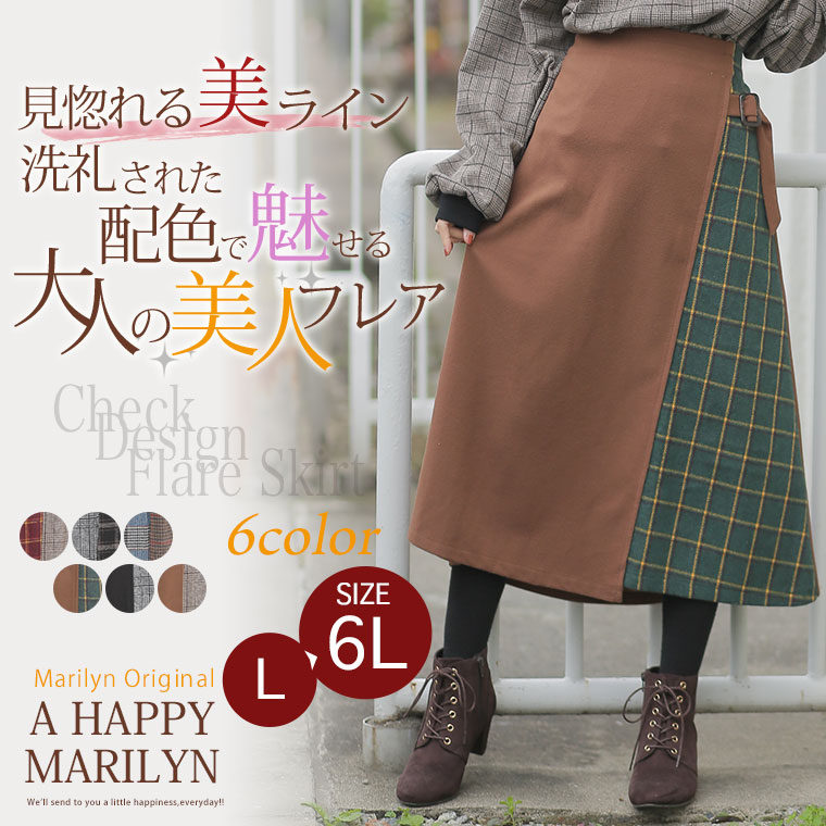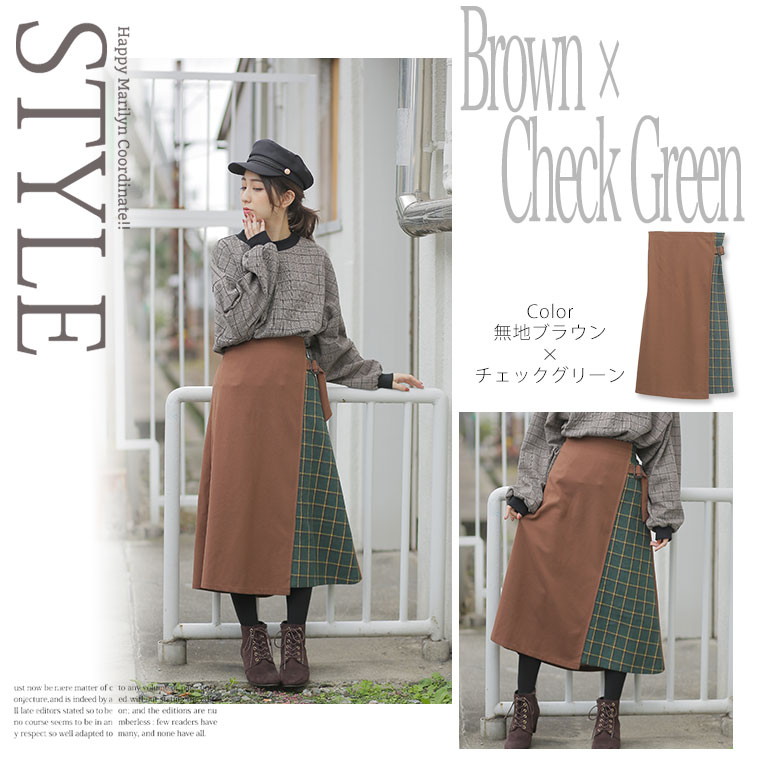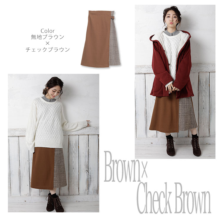 異素材切替と配色デザインがお洒落!!無地と柄から選べるフレアスカート