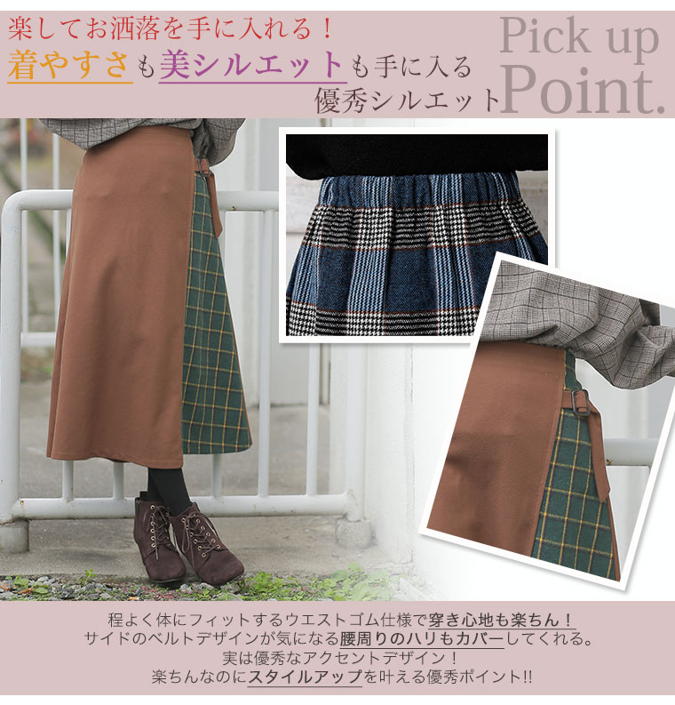 これ1枚でコーデの主役になるトレンド感たっぷりなスカート。ウエスト後ろゴムではきやすさも◎