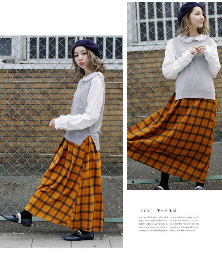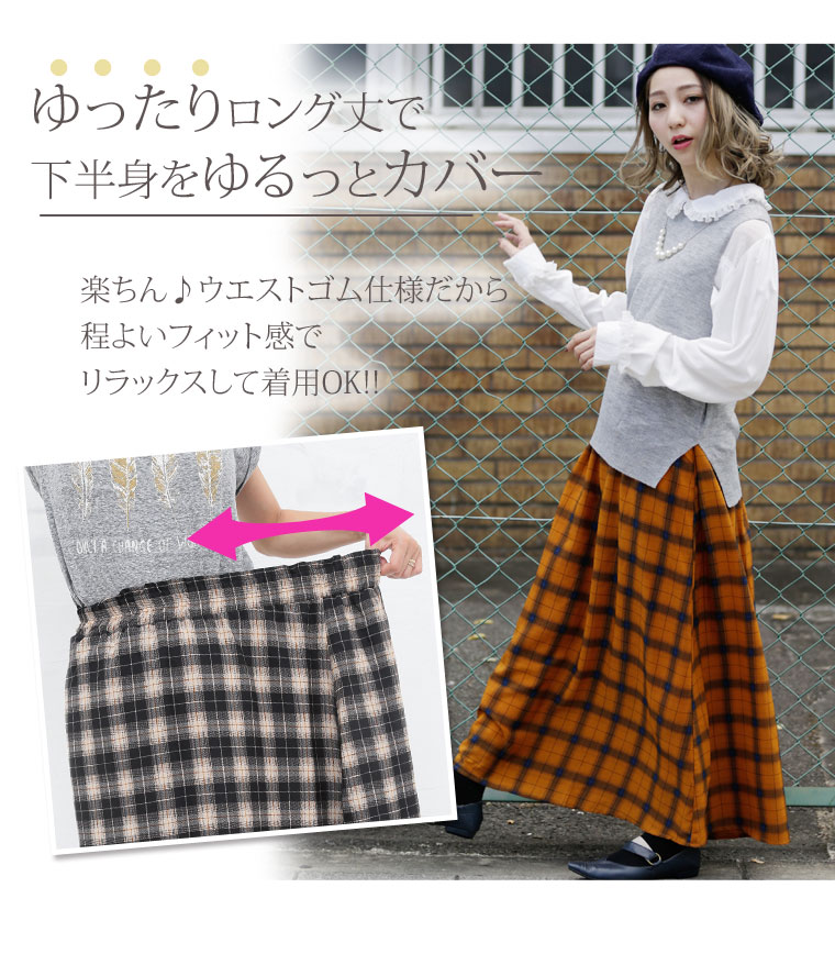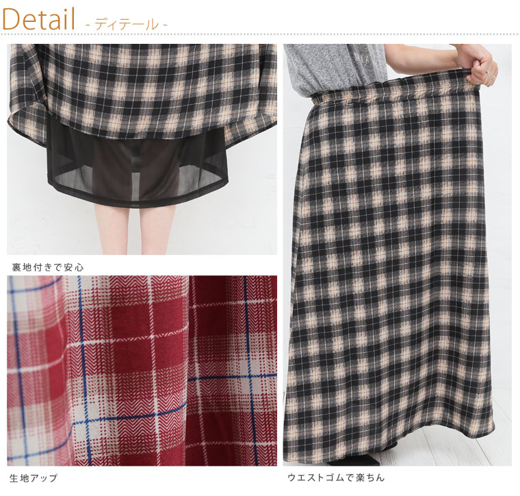 軽やかに広がるデシン素材でふんわりカバー◎チェック柄ギャザースカート