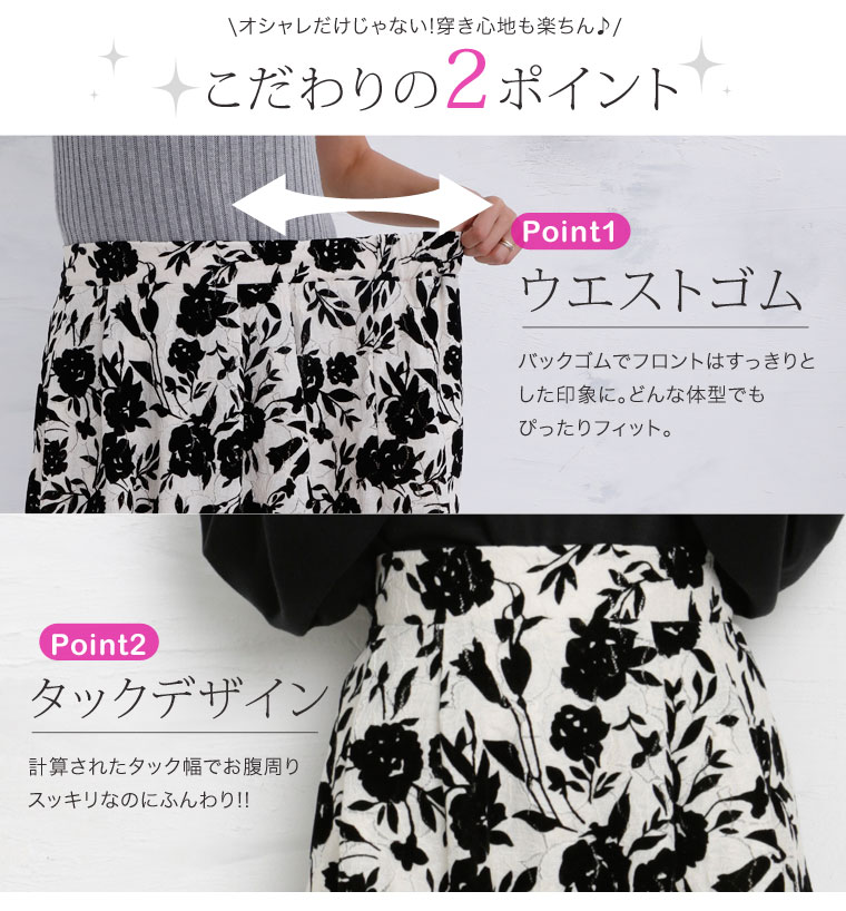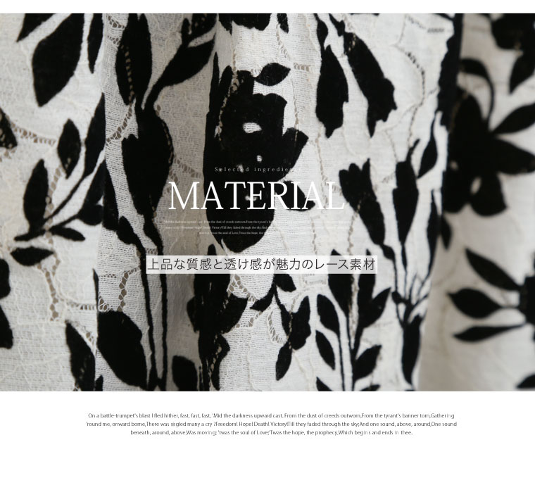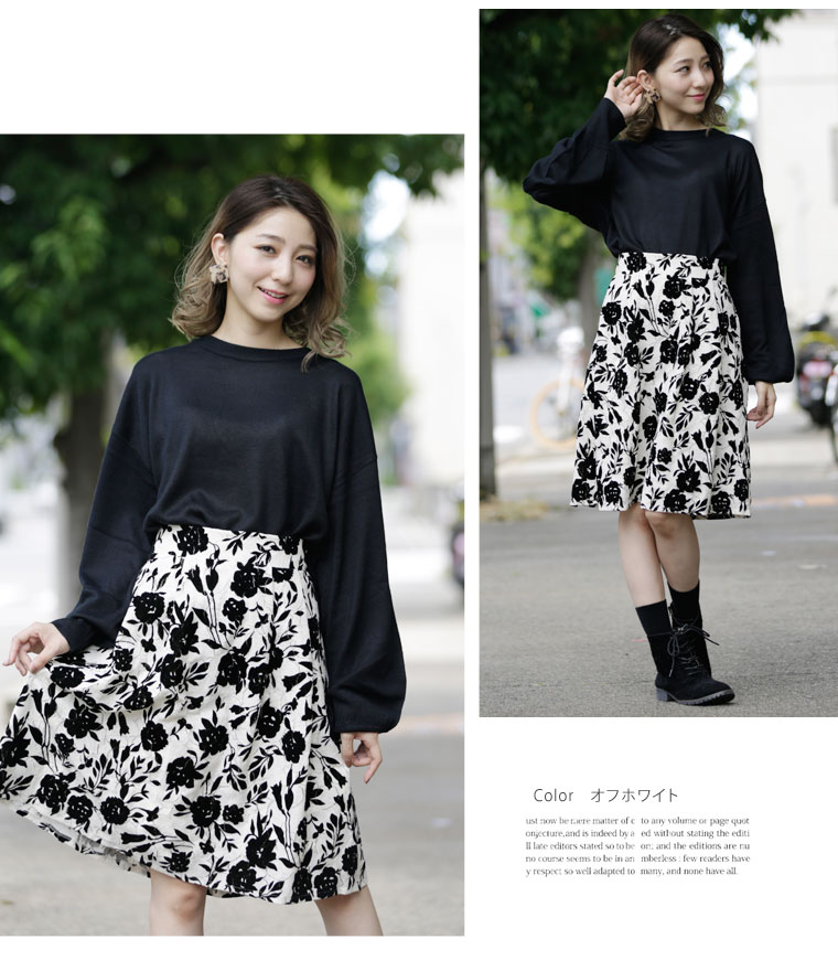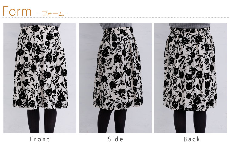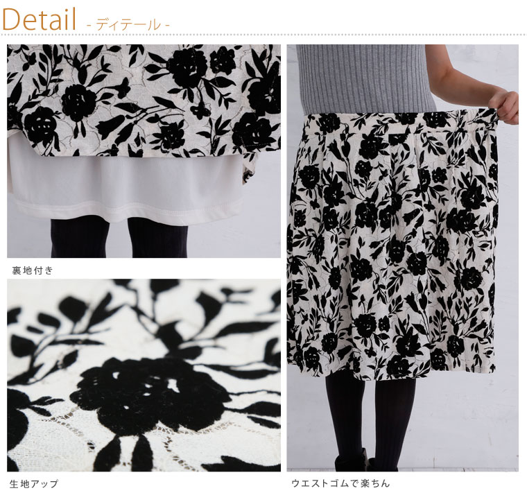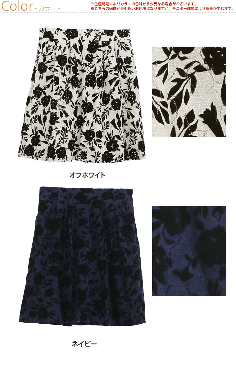 レース素材×フロッキープリントでエレガントに。花柄デザインスカート