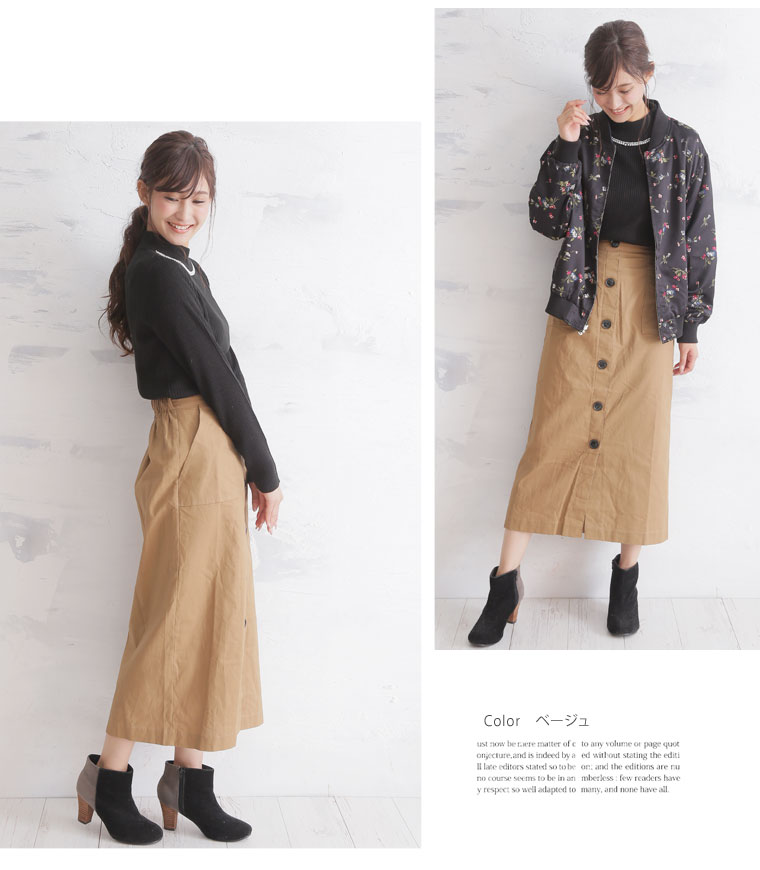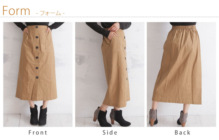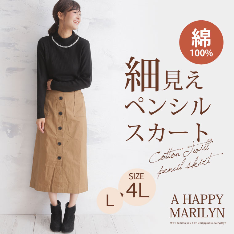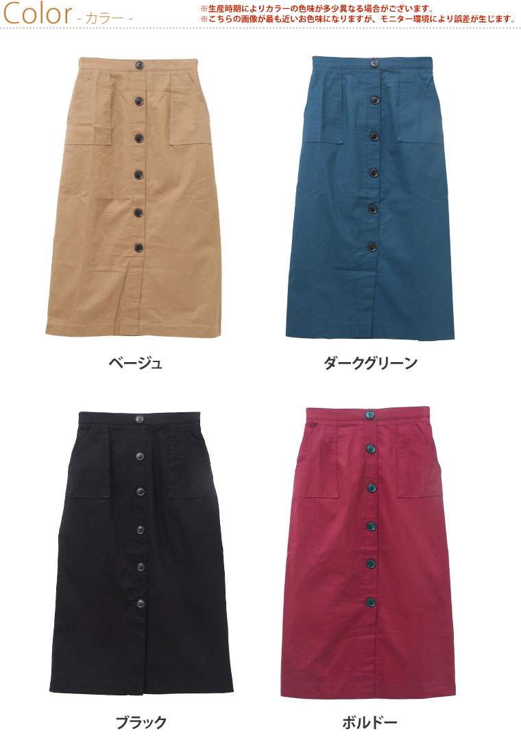 前開き風のボタンデザインでトレンドスタイルに。ペンシルスカート