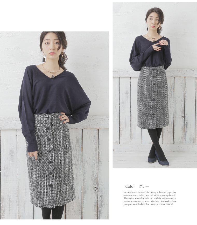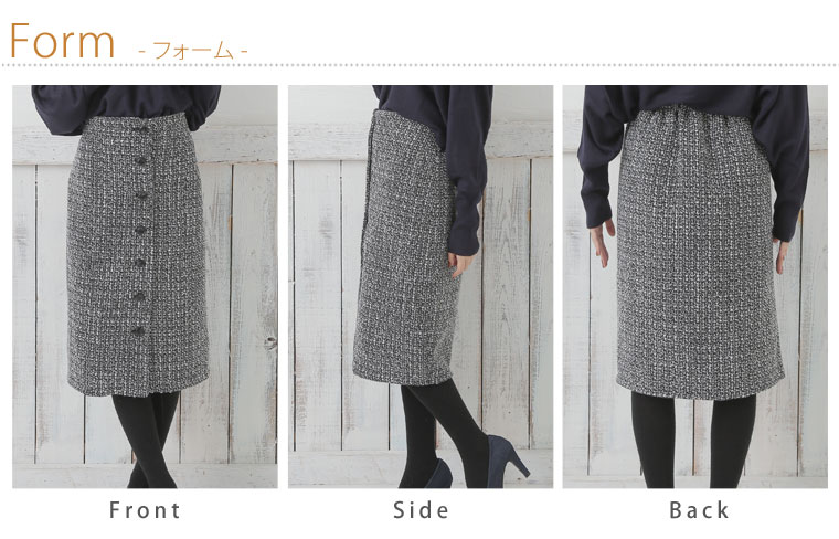 フロント釦ですっきり縦ラインを演出!!ナロースカート