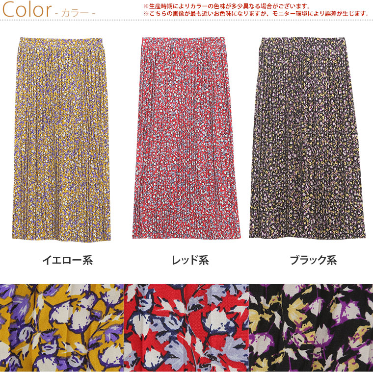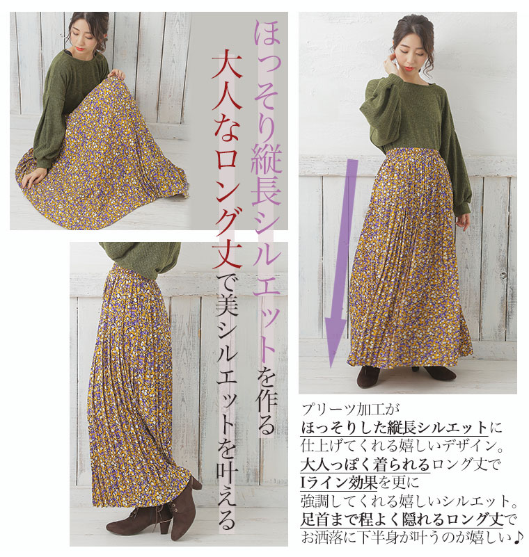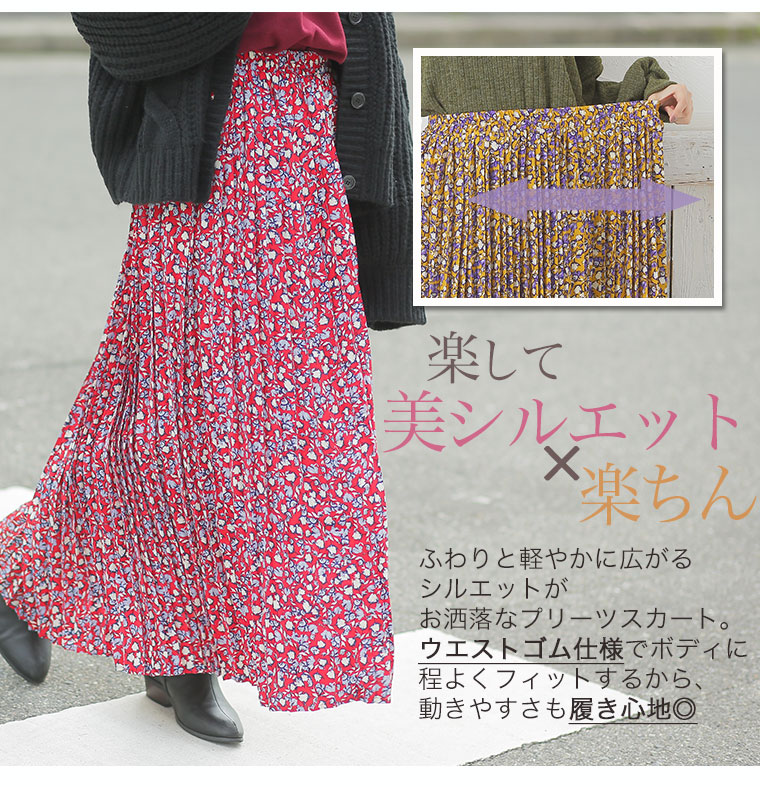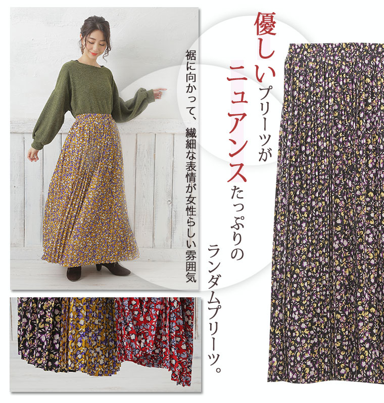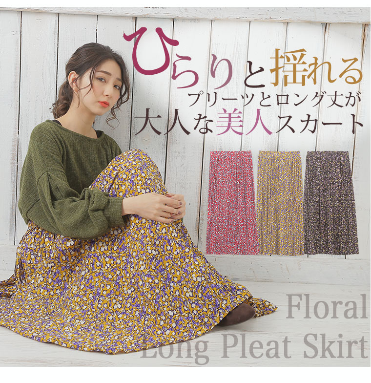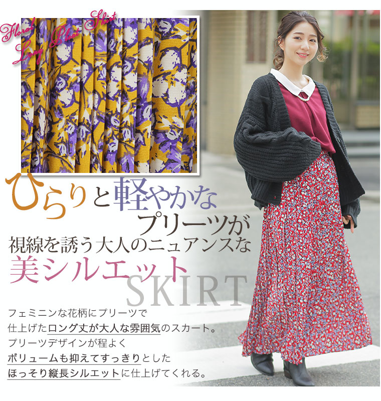 中花柄のプリントでフェミニンなロングプリーツスカート
