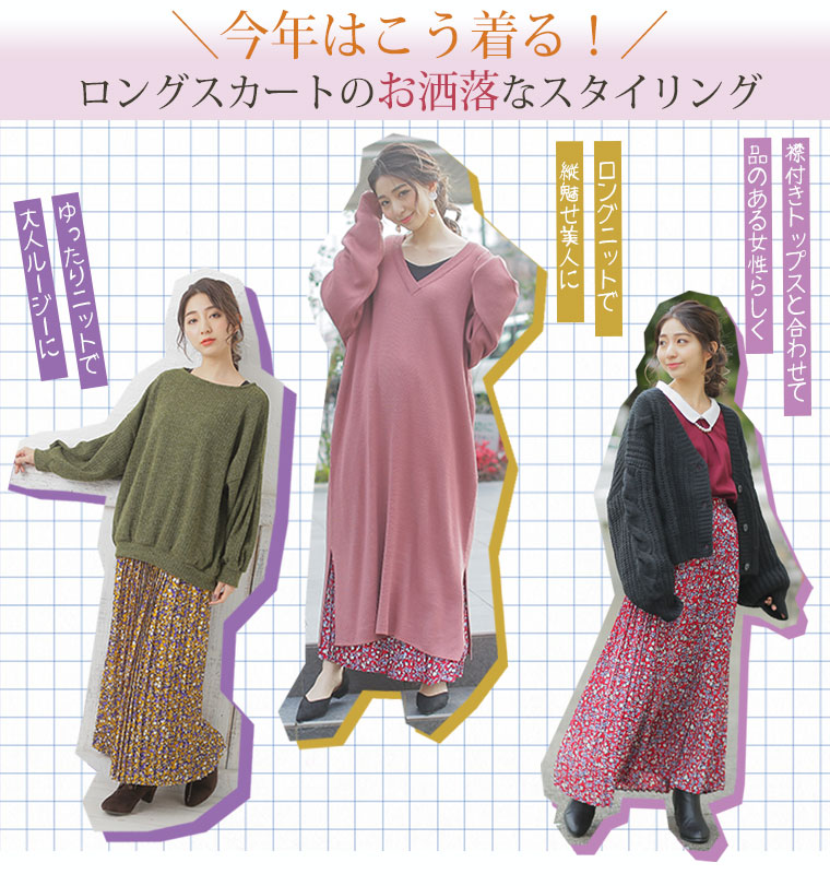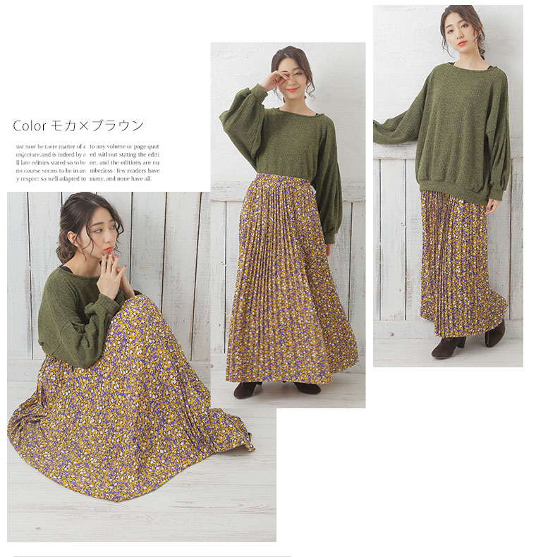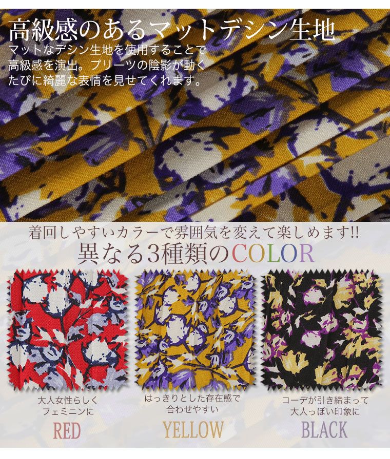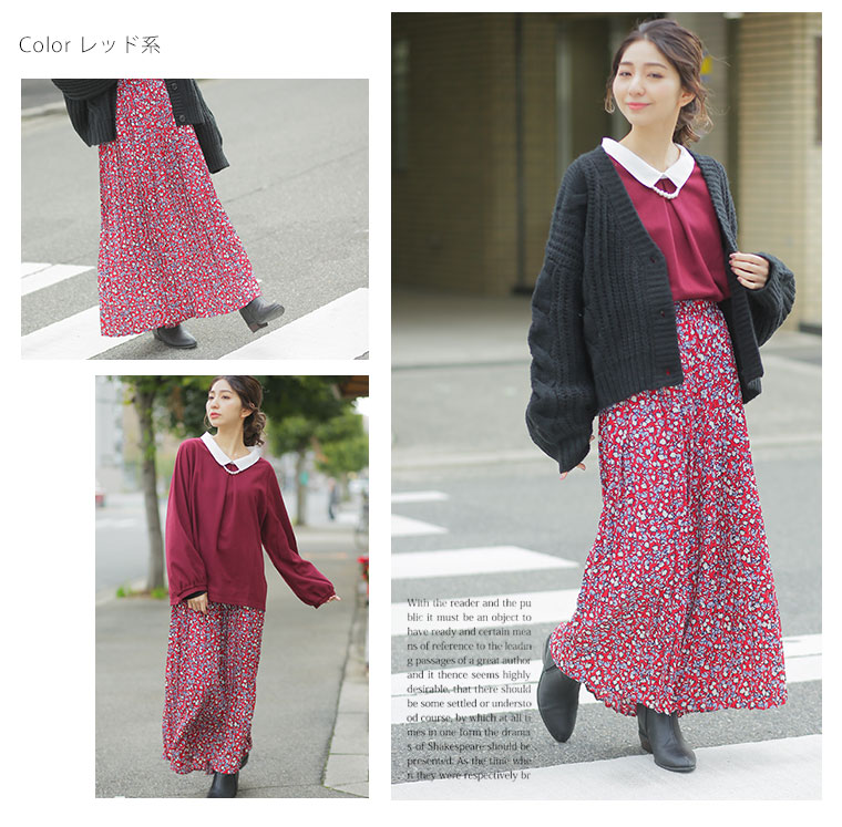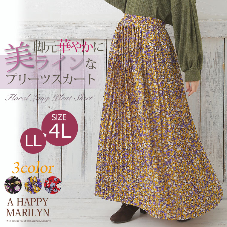 中花柄のプリントでフェミニンなロングプリーツスカート
