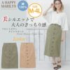 スッキリとしたシルエットに。フロントボタンがアクセントの膝下丈タイトスカート