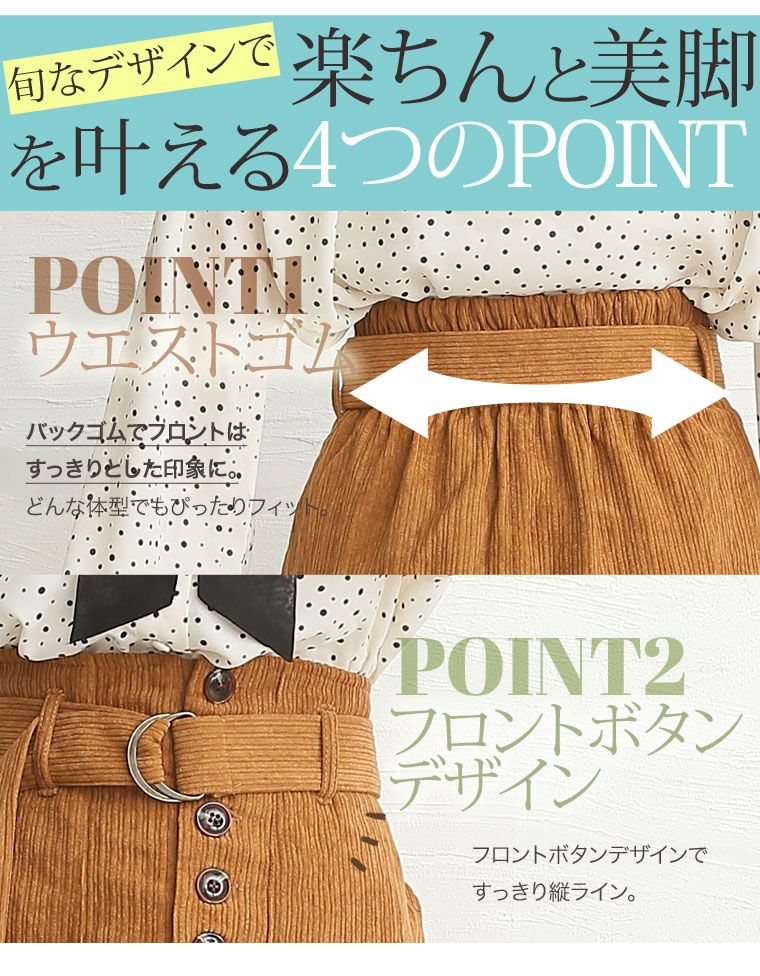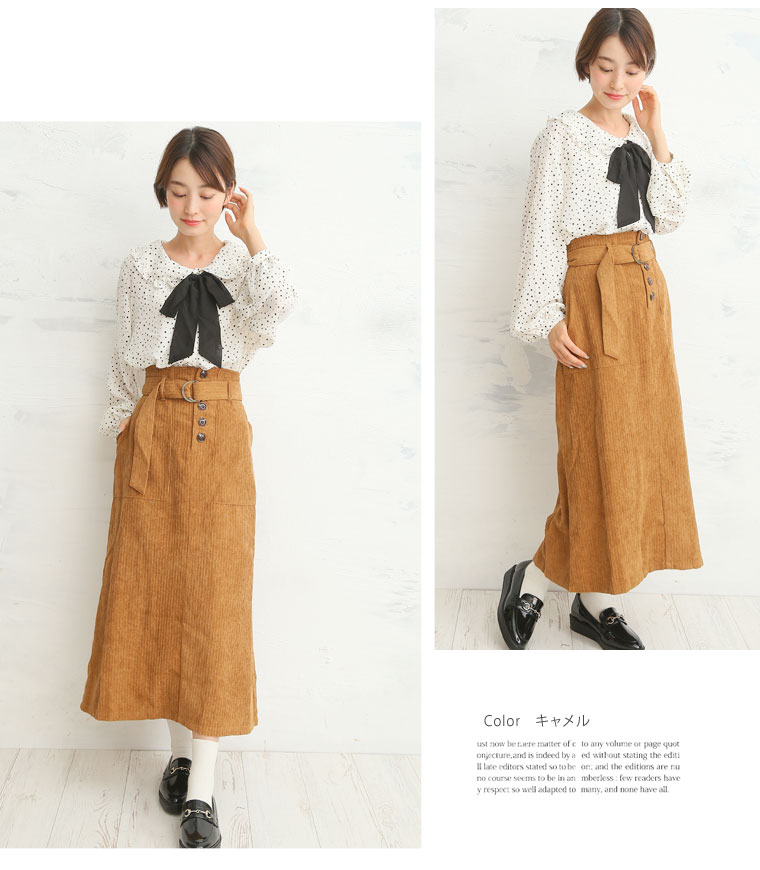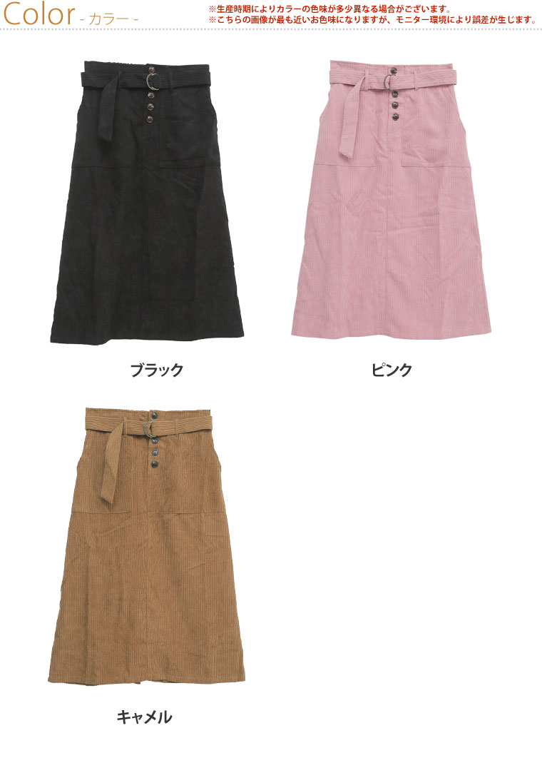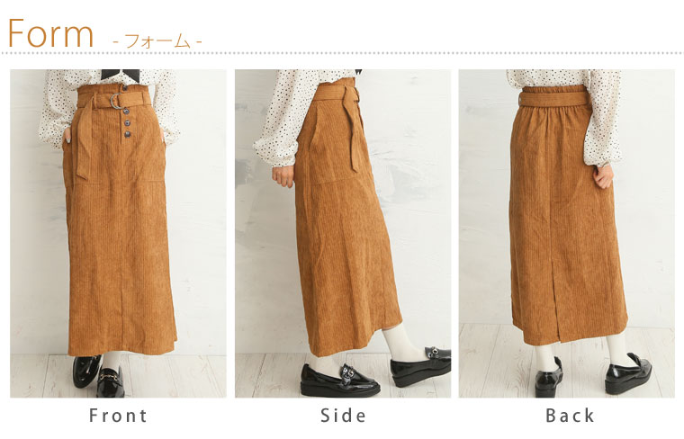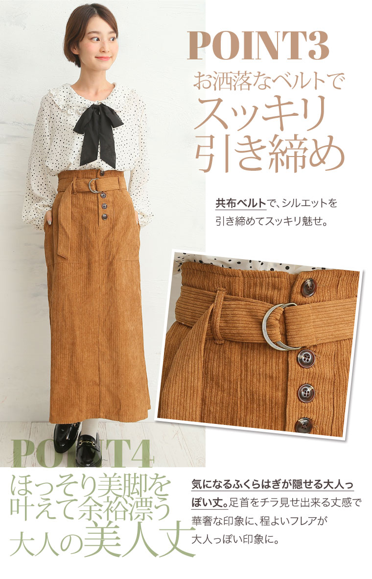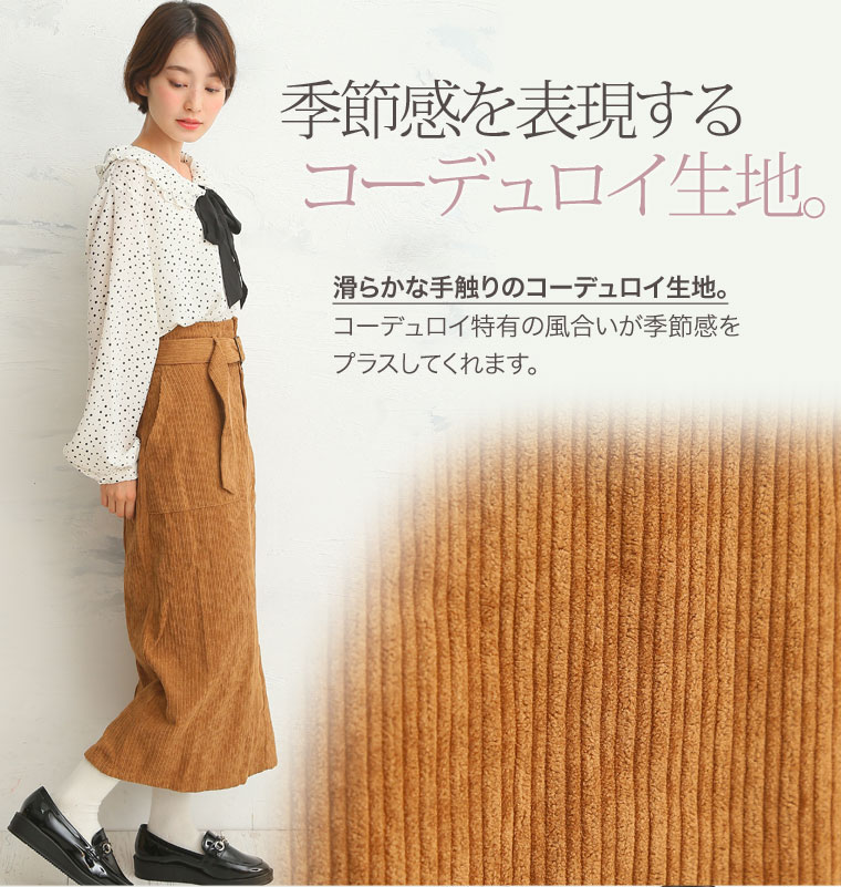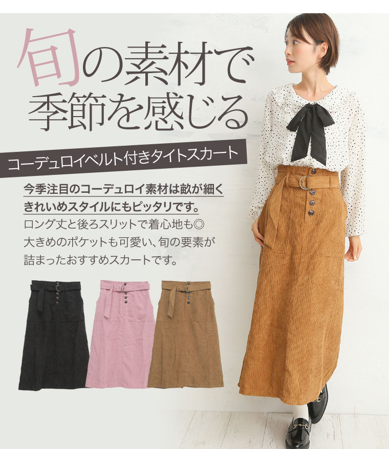季節感たっぷりのコーデュロイでほっこりスタイル!!ベルト付きタイトスカート