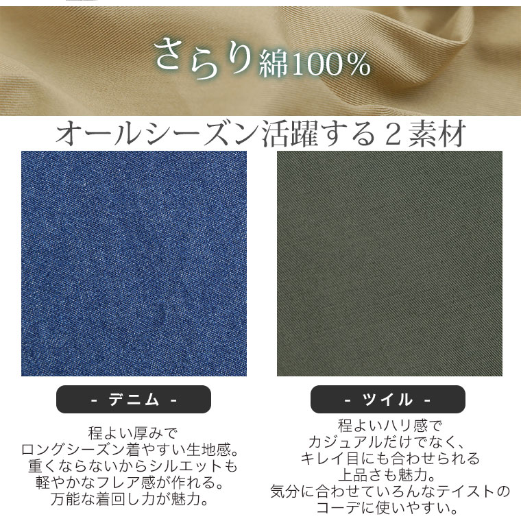 ゆるっと楽に可愛い。デニムとチノの二種類の素材でご用意しました!