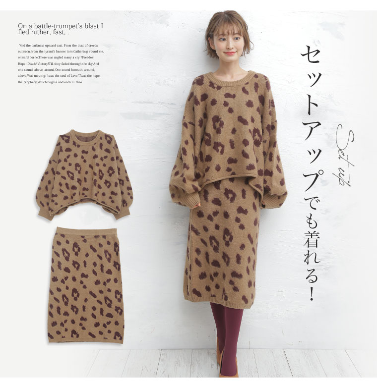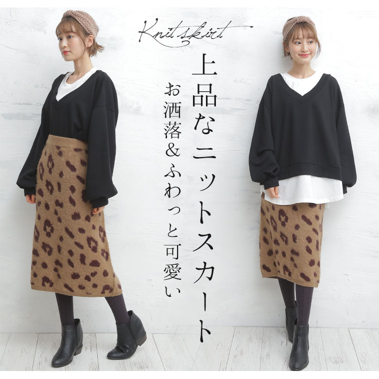 セットアップでも着れる!ゆったり上品なアニマル柄ニットスカート