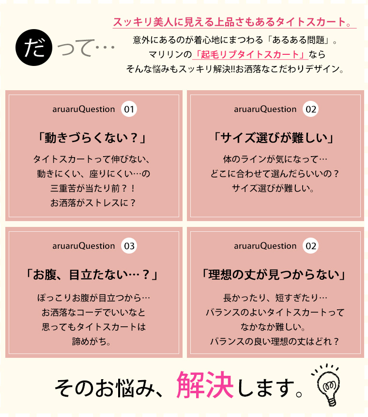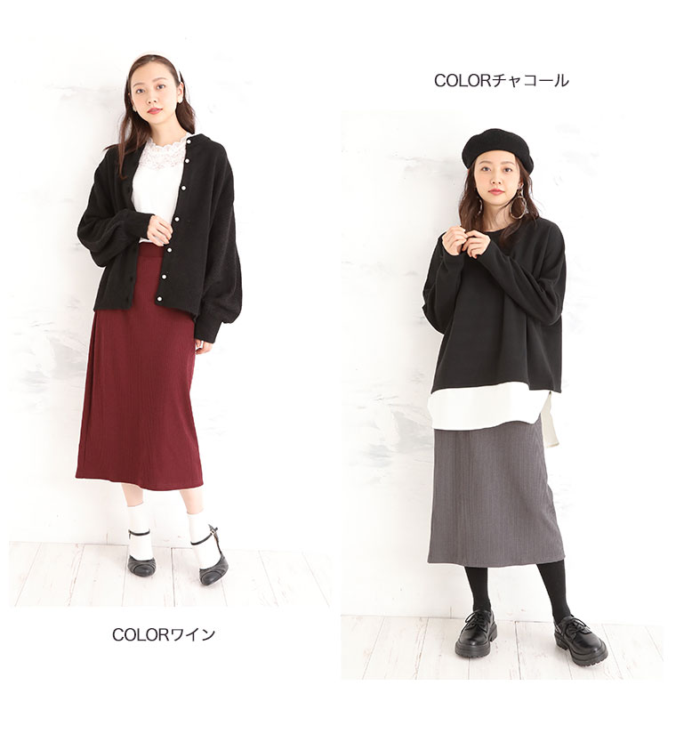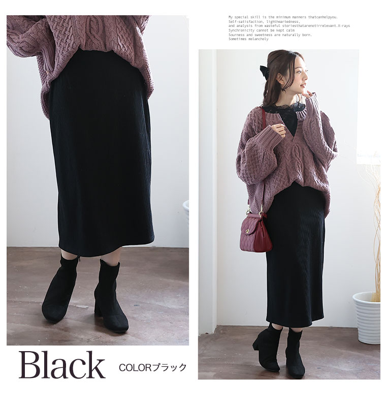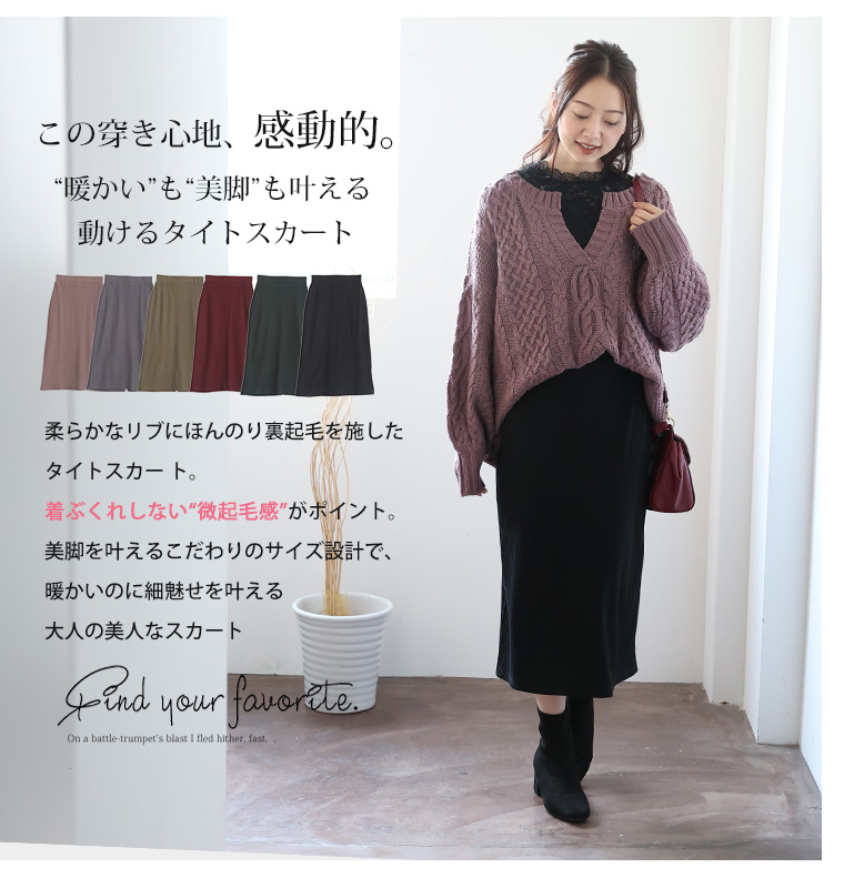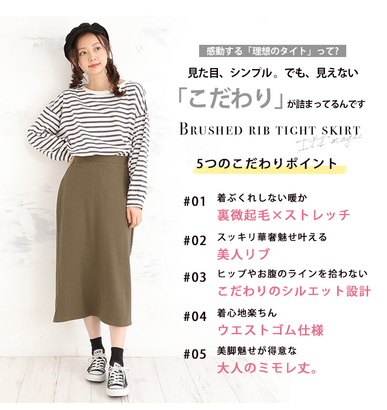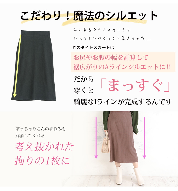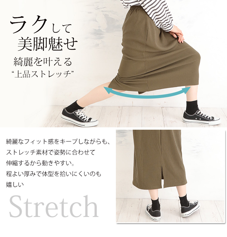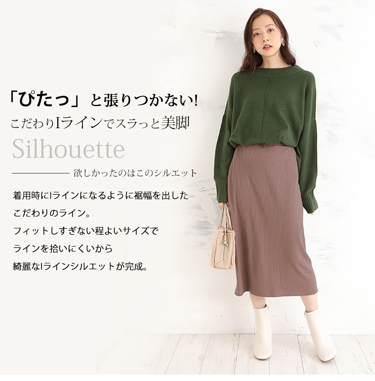 着膨れ回避の細魅せ美脚!裏微起毛タイトリブスカート