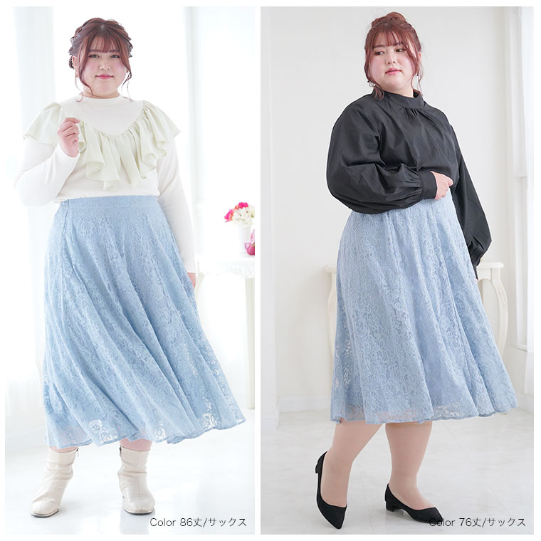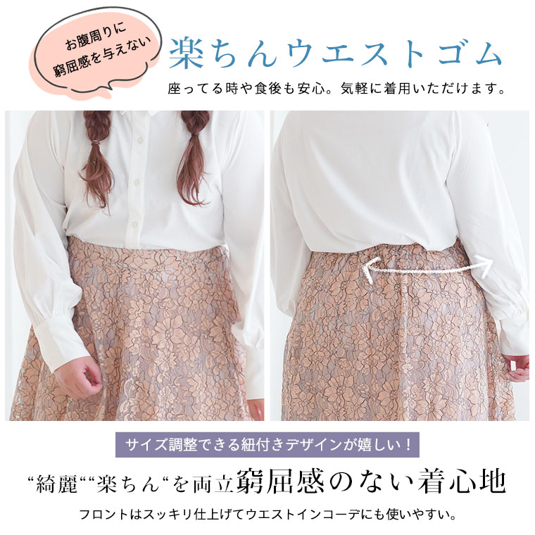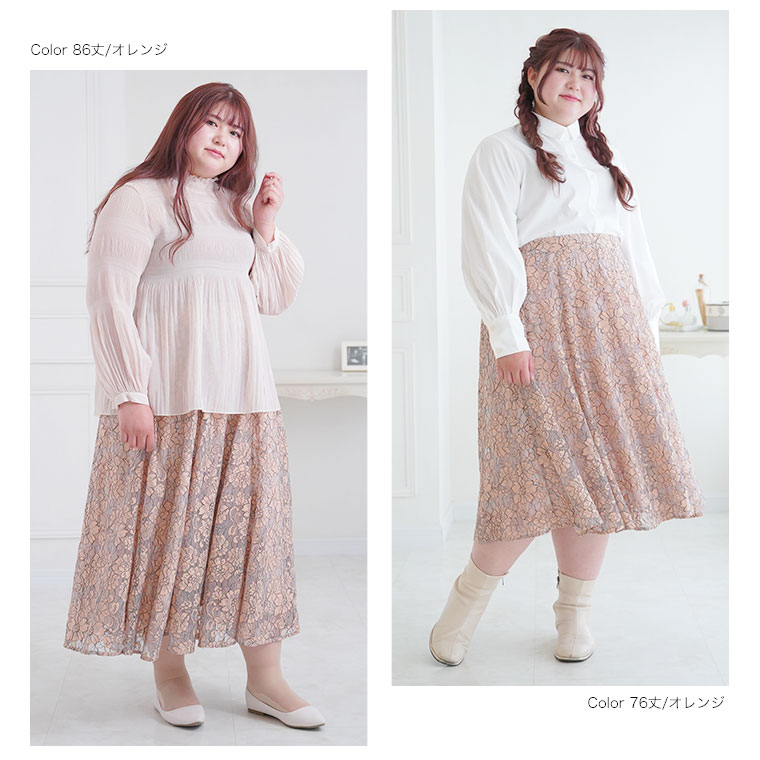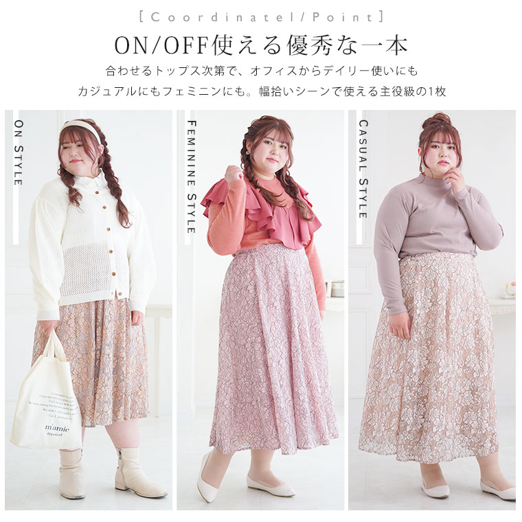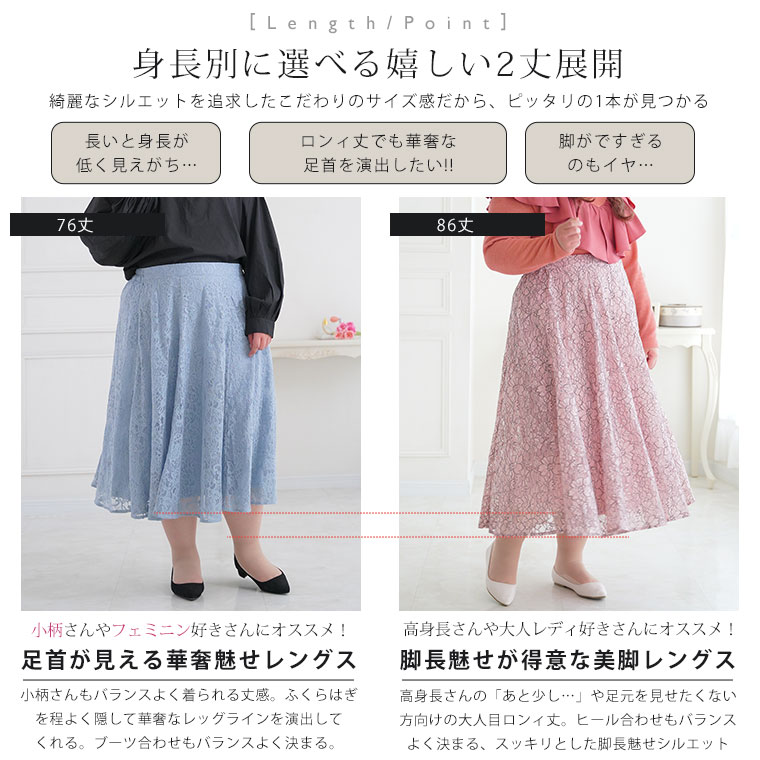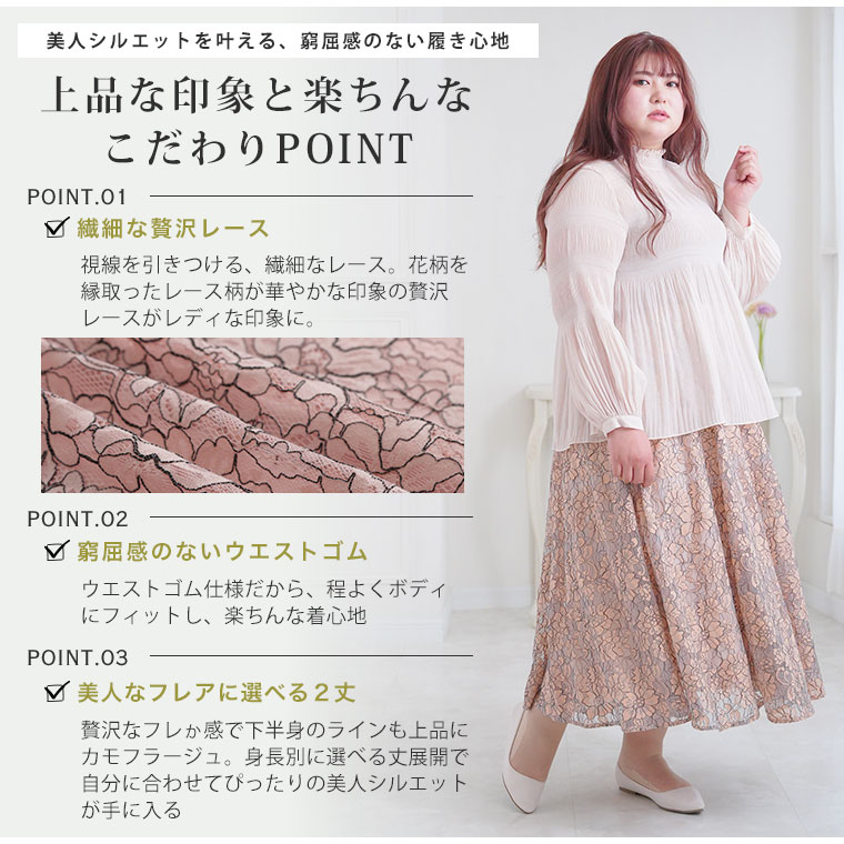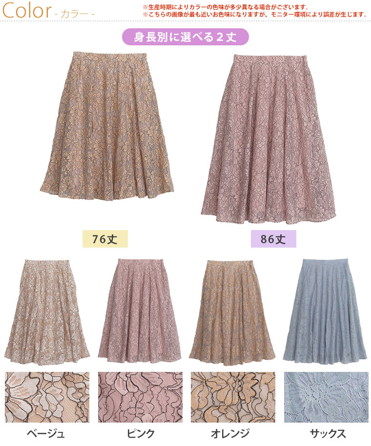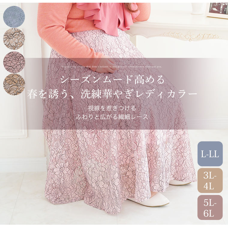ふんわり揺れる花柄レースが上品なフレアスカート