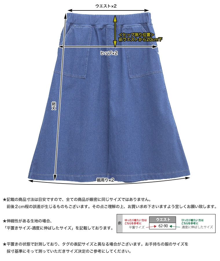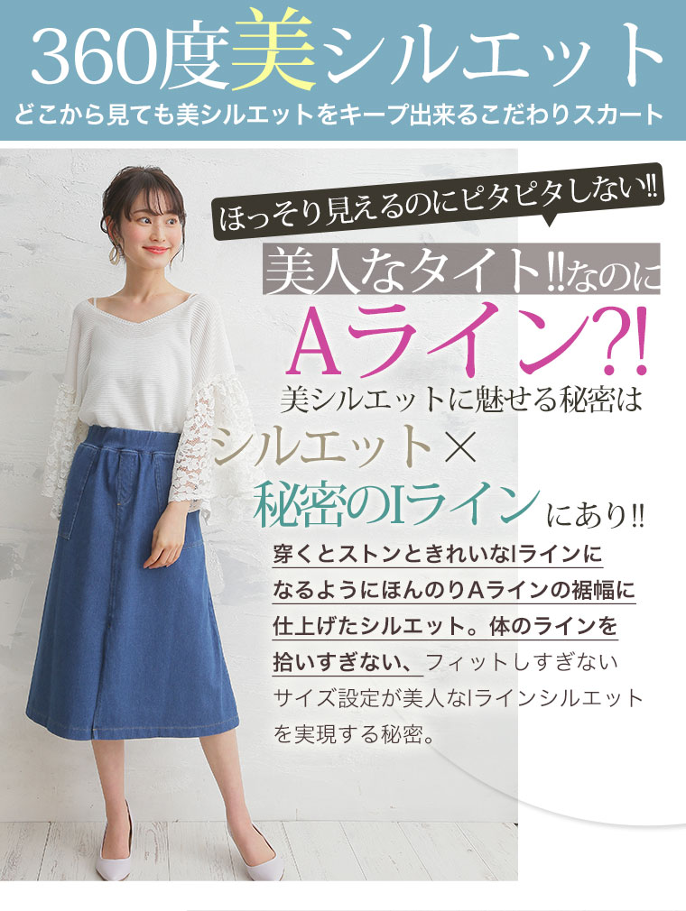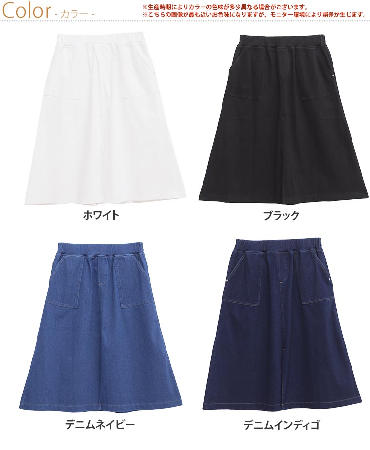 身長:162 購入サイズ:5L ストレッチ感:動きやすい カラーについて:デニムスカートがほしかったので夏でも可愛くコーデできそうです。