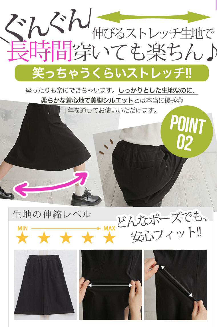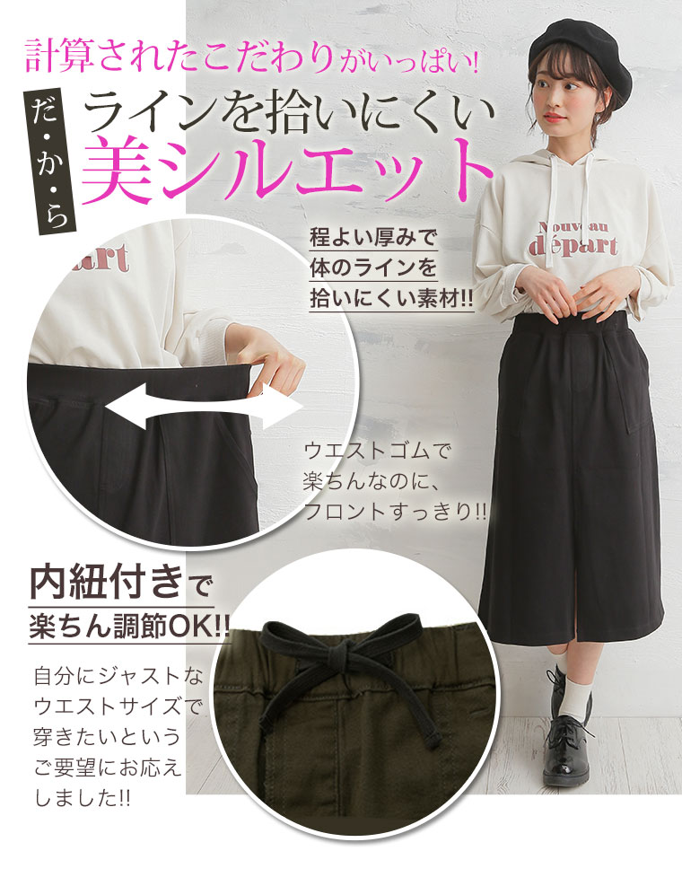 4. 大きいサイズ 新・魔法のレギパンpremiumの生地で作った 美シルエット 膝下丈 スカート