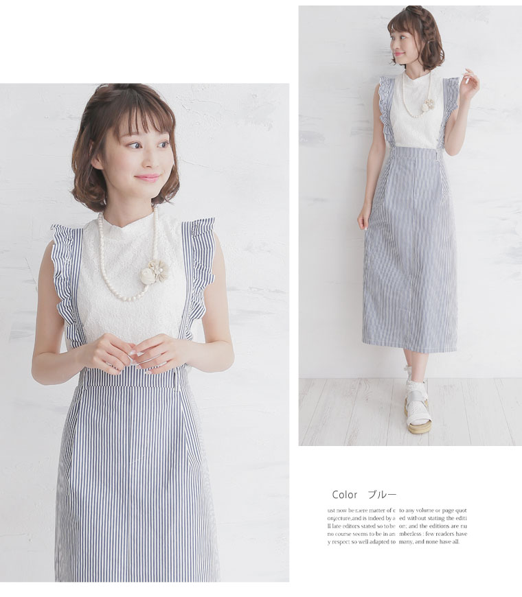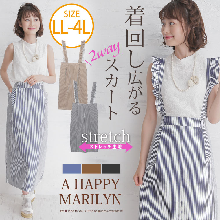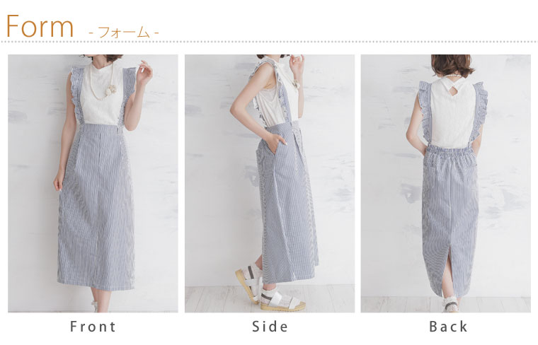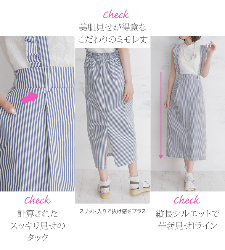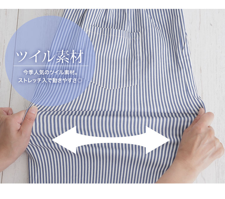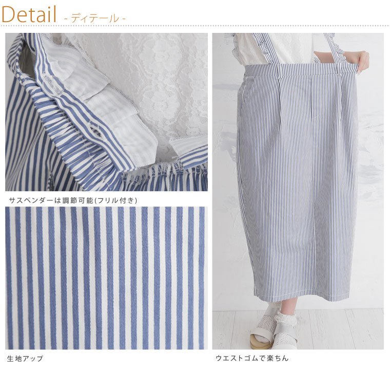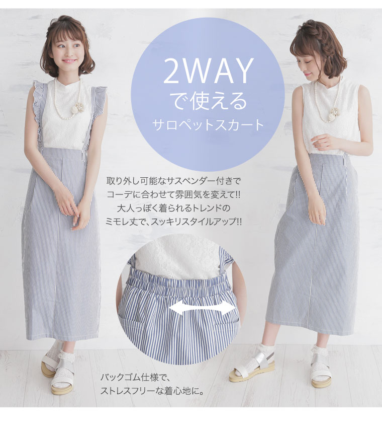2wayで使えるストレッチツイルストライプサロペットスカート