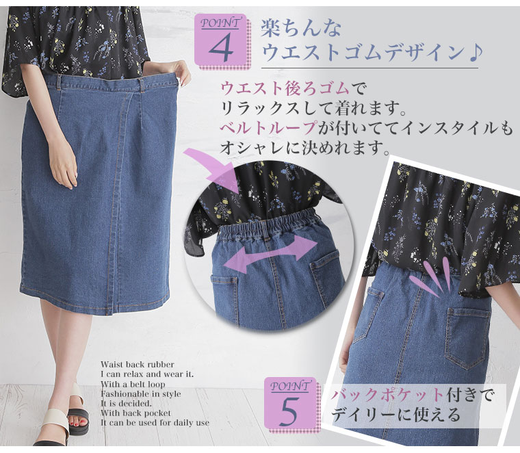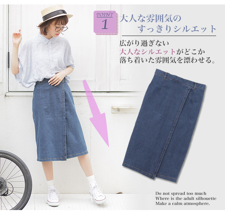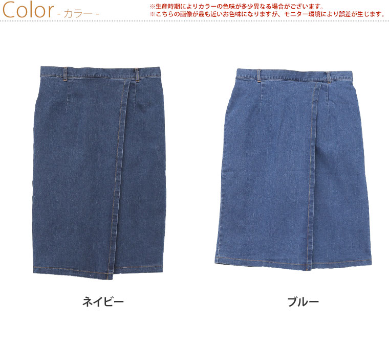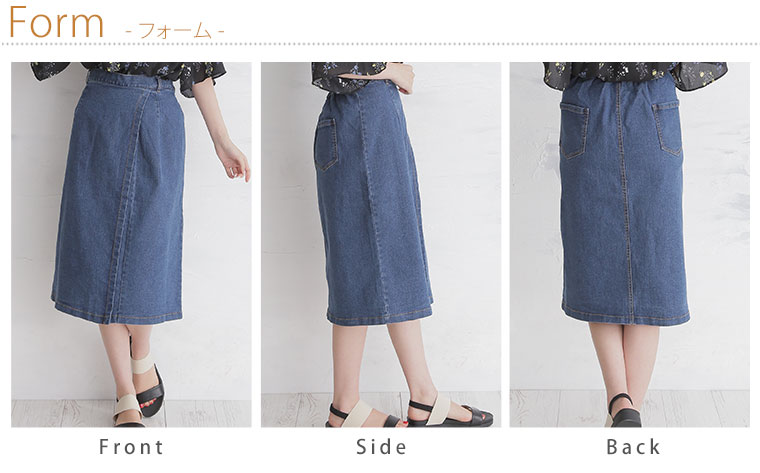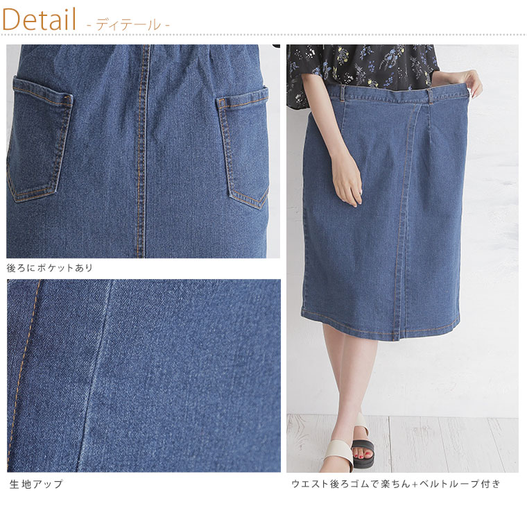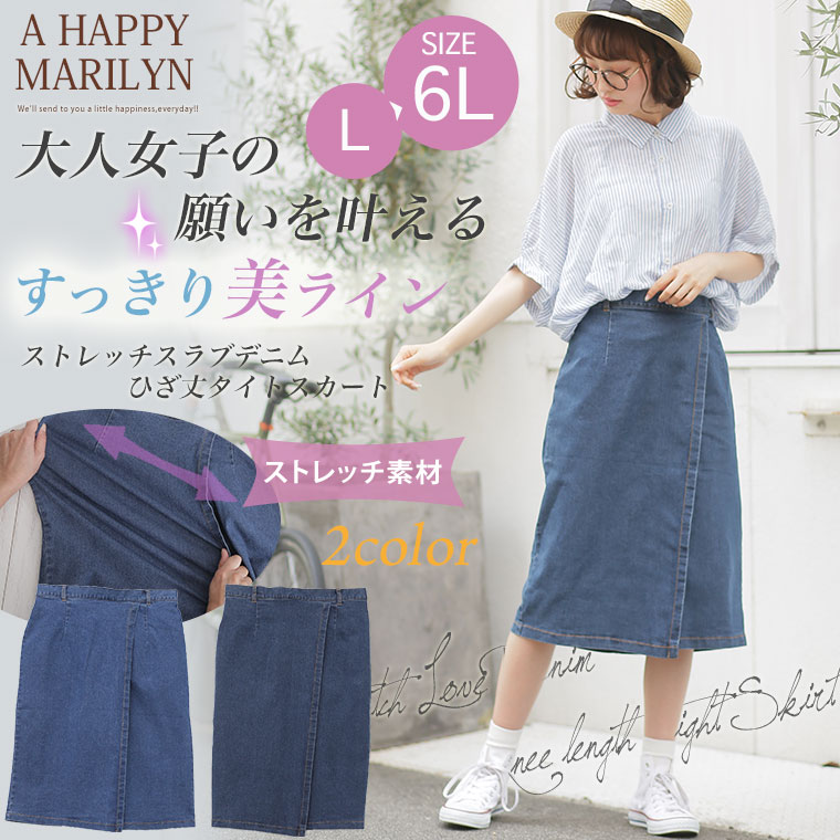 ストレッチスラブデニムひざ丈タイトスカート