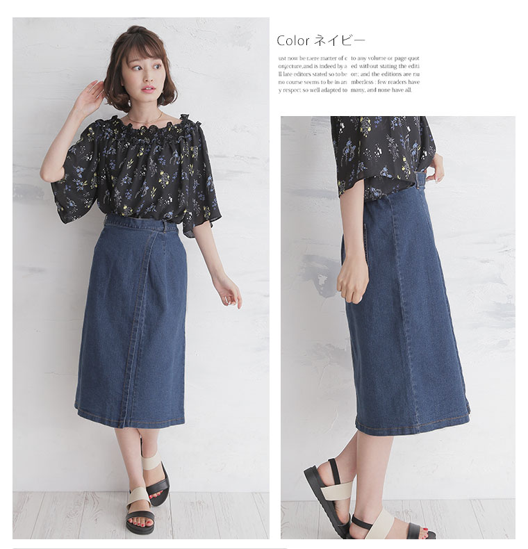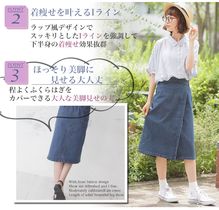 ラップ風デザインですっきりとしたIラインが下半身に着痩せ効果を期待させる。