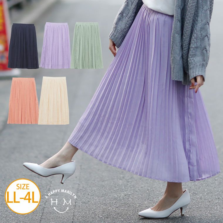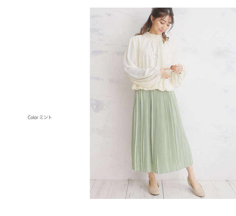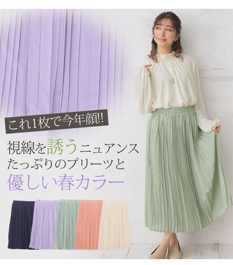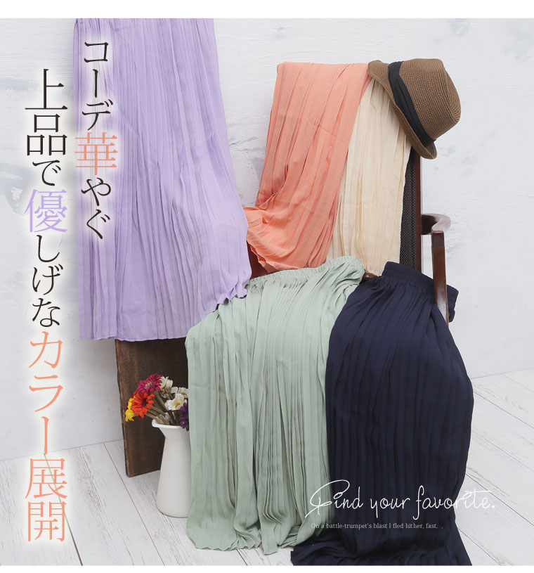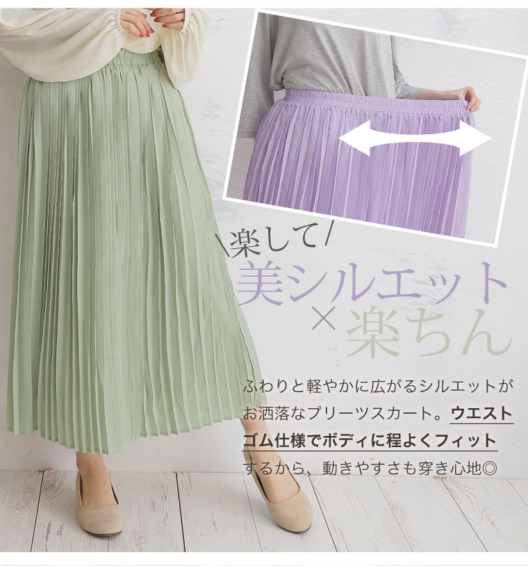 ほっそり縦長シルエットで下半身カバー◎ジョーゼットミモレプリーツスカート